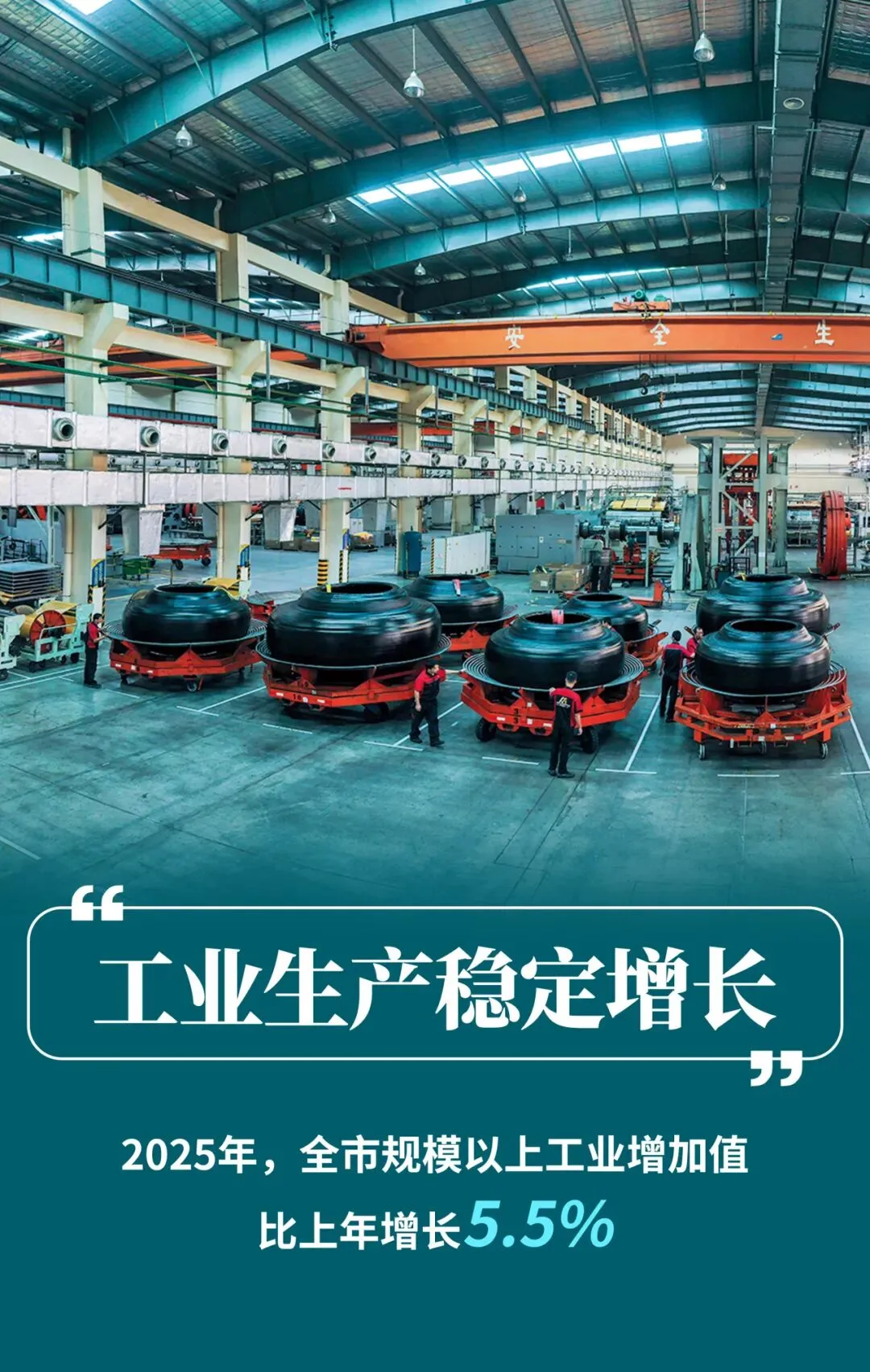 (二)工业生产稳定增长,新质生产力加速成长。2025年,全市规模以上工业增加值比上年增长5.5%。一是超六成行业实现增长。全市34个规模以上工业行业大类中,有22个行业增加值实现正增长,行业增长面为64.7%。其中,纺织业、计算机通信和其他电子设备制造业、化学原料及化学制品制造业等重点行业增长较快,分别增长26.7%、19.3%、10.3%。二是新兴动能持续增强。规模以上高技术制造业、装备制造业增加值分别增长17.8%和14.4%,高于规模以上工业增加值增幅12.3个和8.9个百分点,共拉动规模以上工业增加值增长3.5个百分点。三是重点产业拉动有力。规模以上新型功能材料产业增加值增长21.8%,拉动规模以上工业增加值增长4.1个百分点;生命健康产业增加值增长20.7%,拉动规模以上工业增加值增长0.3个百分点;临港产业增加值增长11.7%,拉动规模以上工业增加值增长4.1个百分点;高端装备产业增加值增长7.9%,拉动规模以上工业增加值增长0.7个百分点。