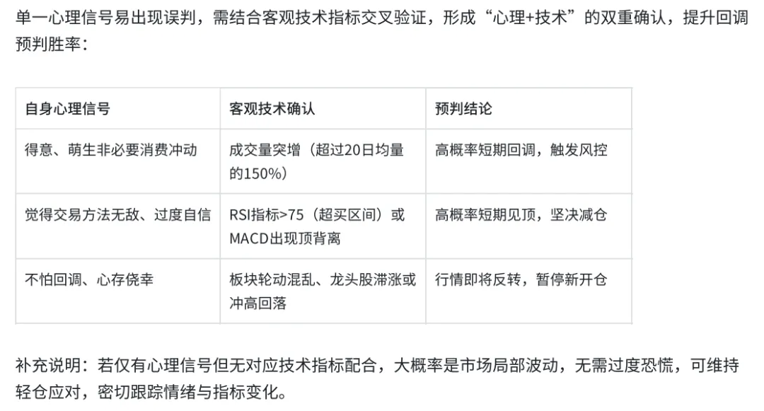 当⾃⾝出现以下⼼理状态,视为市场回调接近尾声、情绪回归理性的信号,可逐步回补仓位,进⼊下⼀轮周期: