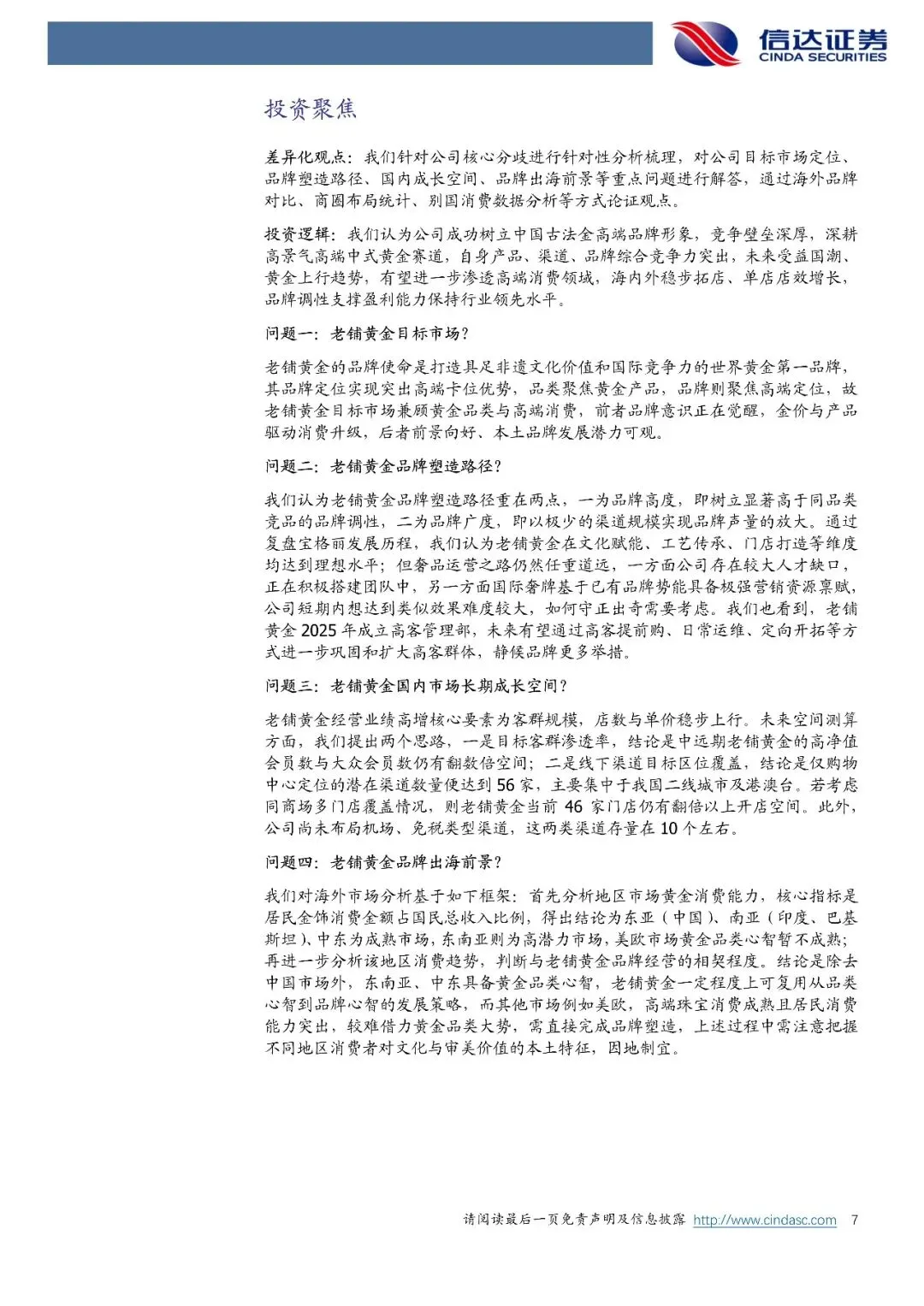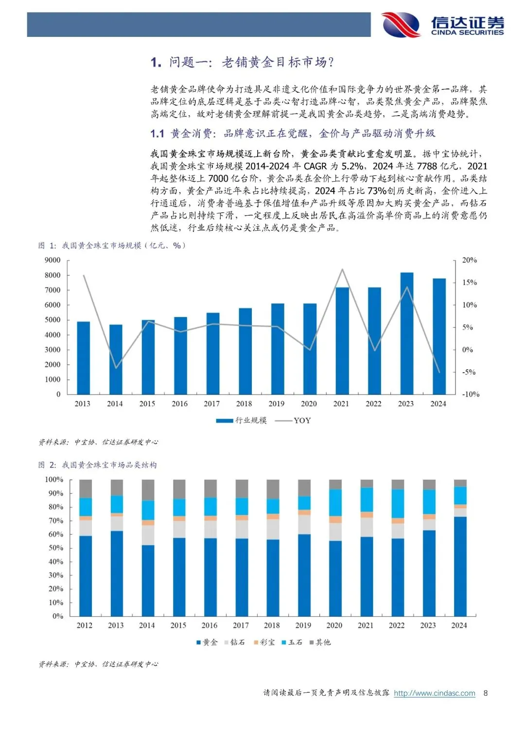 问题一:老铺黄金目标市场?老铺黄金的品牌便命是打造具足是非遗文化价值和国际竞争力的世界黄金第一品牌,其品牌定位实现突出一卡位优势,品类聚焦黄金产品,品牌则聚焦高端定位,故老铺黄金目标标市场兼顾黄金品类与高端消费,前者品牌意识正在觉醒,金价与产品驱动消费升级,后者前景向好,本土品牌发展潜力可观。