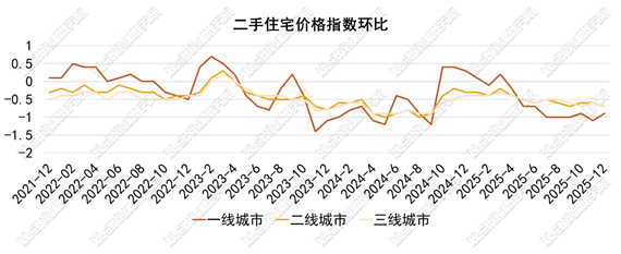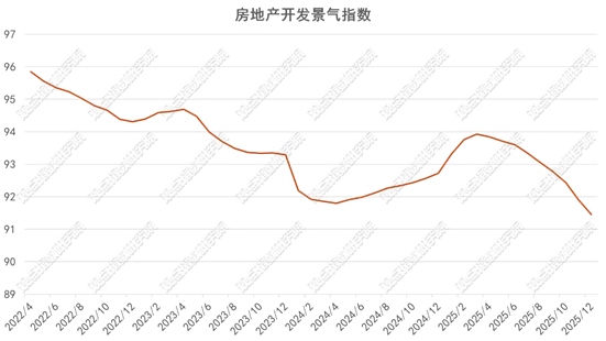 12月房地产开发景气指数为91.45,市场仍处于弱景气区间,表明行业尚未完全走出调整期。不过,结合一线城市房价环比降幅收窄、上海房价双涨、年末销售翘尾等信号,市场呈现“弱中有稳”的特征:一线城市作为政策敏感区域,其需求端观望情绪的消解可能逐步传导至二三线城市,但城市间分化仍将持续。