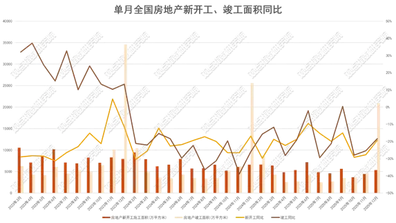 2025年,房屋新开工面积累计为58770万平方米,施工面积累计659890万平方米,竣工面积累计60348万平方米。