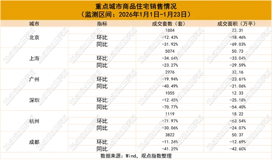 观点指数监测的6个重点城市中,1月前三周商品住宅成交1.58万套,商品住宅成交面积186.12万平方米。市场正处于磨底后的结构性复苏阶段,预计春节后叠加传统“小阳春”及深圳等地的回暖信号,活跃度有望阶段性回升。