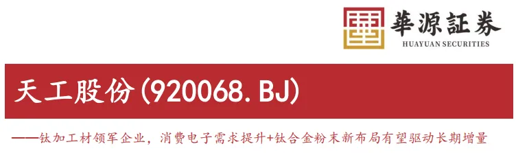 证券研究报告:《华源证券-天工股份(920068.BJ):钛加工材领军企业,消费电子需求提升+钛合金粉末新布局有望驱动长期增量》