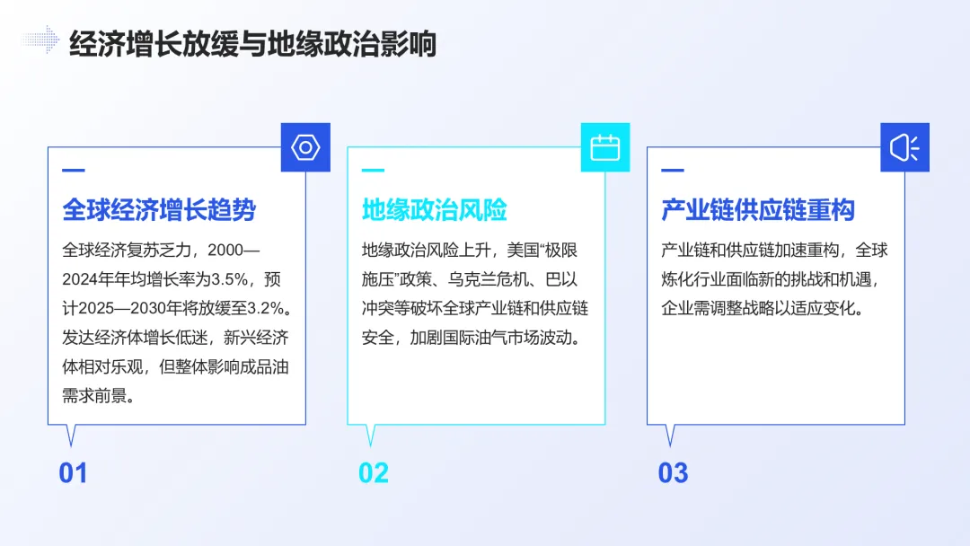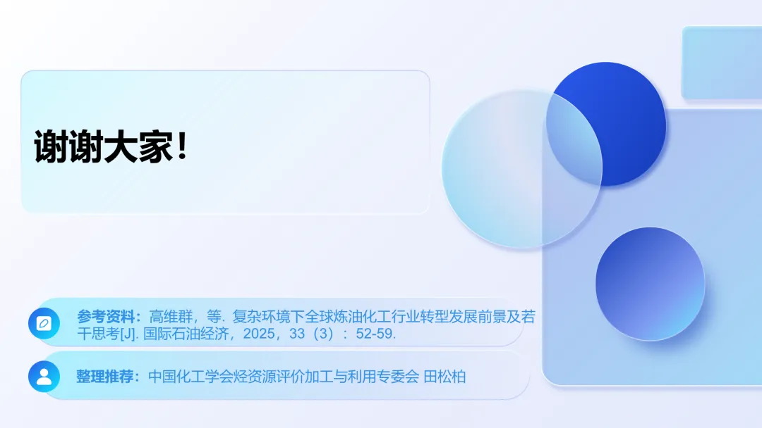 免责声明:本ppt内容参考“高维群,等. 复杂环境下全球炼油化工行业转型发展前景及若干思考[J]. 国际石油经济,2025,33(3):52-59.”,由中国化工学会烃资源评价加工与利用专委会田松柏整理并推荐,仅供学习、交流之目的,版权归原作者或机构所有。若涉及版权问题,烦请留言联系,我们将第一时间更正或删除!