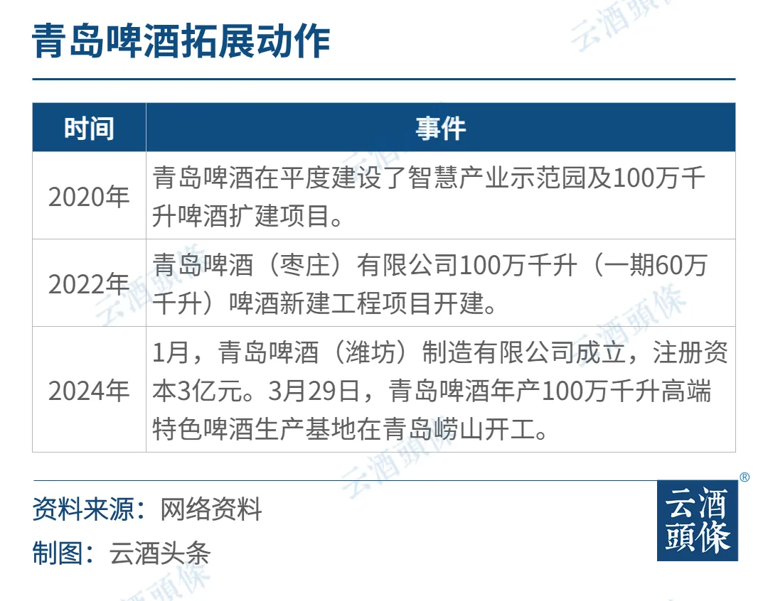 原因就在于青岛啤酒将山东市场视为“大本营”“根据地”,通过新建制造基地、收购当地酒厂等方式,青岛啤酒先后将崂山啤酒、寿光啤酒、趵突泉啤酒、银麦啤酒、南极洲啤酒、绿兰莎啤酒、汇泉啤酒等地方品牌收入麾下之后,扩产步伐依旧不停。