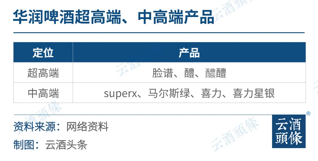 华润啤酒于2018年推出superX,2019年推出马尔斯绿和喜力,2020年推出喜力星银丰富了中高端产品线,同年还推出了“脸谱”超高端产品,2021年推出超高端产品“醴”,2023年再次升级超高端新品“醲醴”。