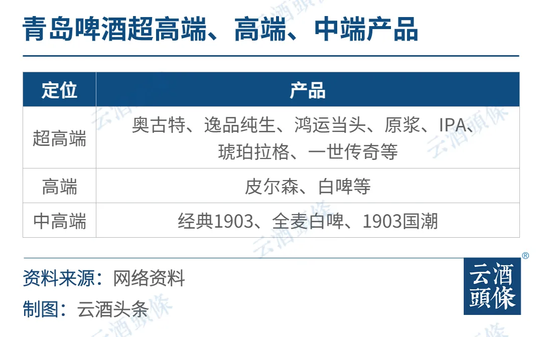 青岛啤酒早在2009年报中就提出了“扩大中高端市场份额”,并推出超高端产品“奥古特”。此后又陆续推出超高端产品逸品纯生、鸿运当头、原浆、IPA、琥珀拉格等,高端产品皮尔森、白啤等,中高端产品经典1903、全麦白啤、1903国潮,2022年更是推出千元啤酒一世传奇,定价1399元/瓶,提高品牌调性。