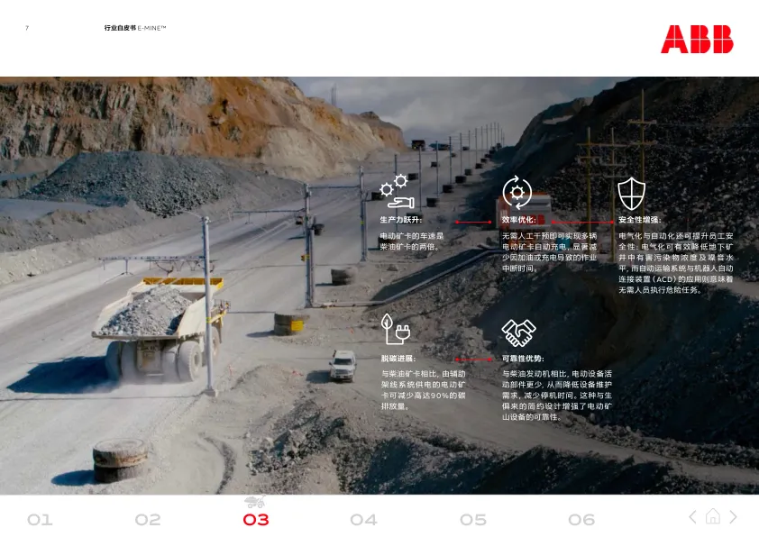 - 环保:辅助架线供电的电动矿卡可减排90%。