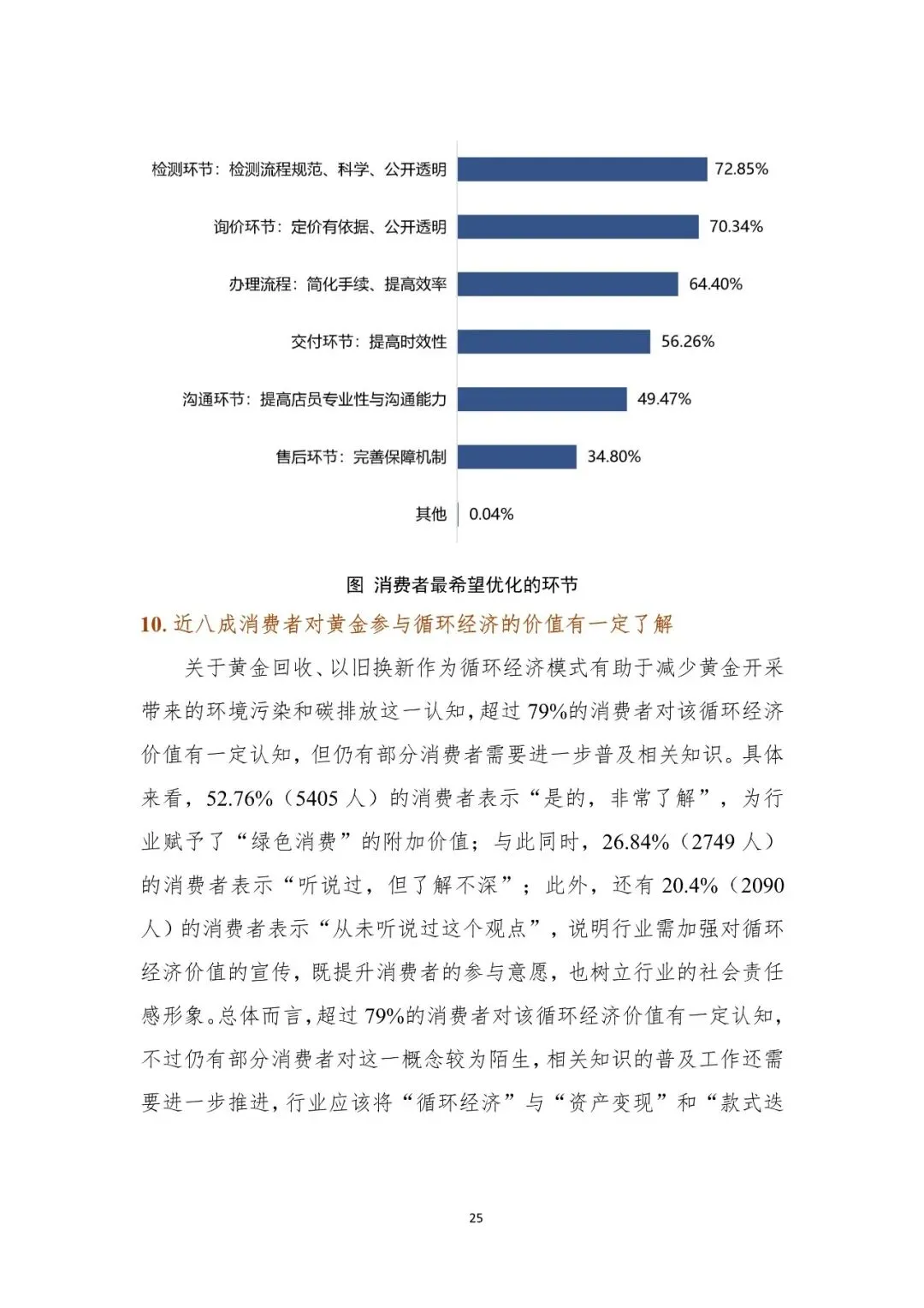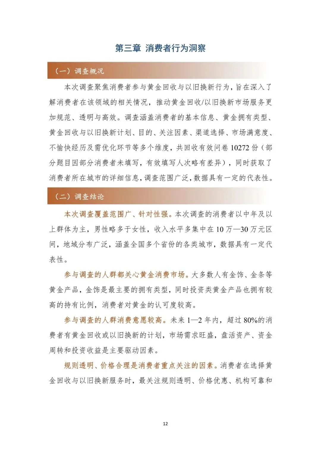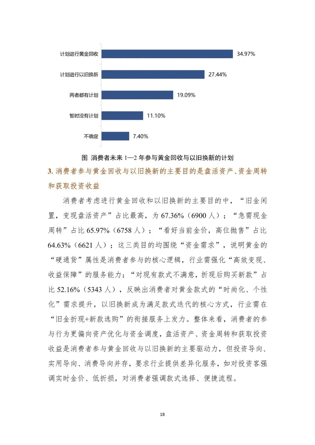 行业现状与痛点:黄金产业作为能源密集型行业,面临高碳排放、水资源污染和生态破坏等挑战。传统开采模式导致资源约束加剧,回收市场存在价格波动大、报价不符、隐藏费用等乱象,消费者对规则透明度和机构可靠性关注度较高。 消费者行为洞察:调研显示,超八成消费者在未来1-2年内有黄金回收或以旧换新计划,但市场不规范操作引发不满,凸显绿色流转的紧迫性。 绿色实践案例:广东省黄金协会发布国内首个黄金回收团体标准,阅宝黄金集团构建线上线下一体化服务网络,周生生集团实现回收黄金原料占比超六成,这些实践为行业提供了可循路径。