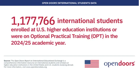 数据表明,美国高等教育领域的国际学生总量已回升至 117.7 万人,足以见得美国教育具有持久的吸引力。