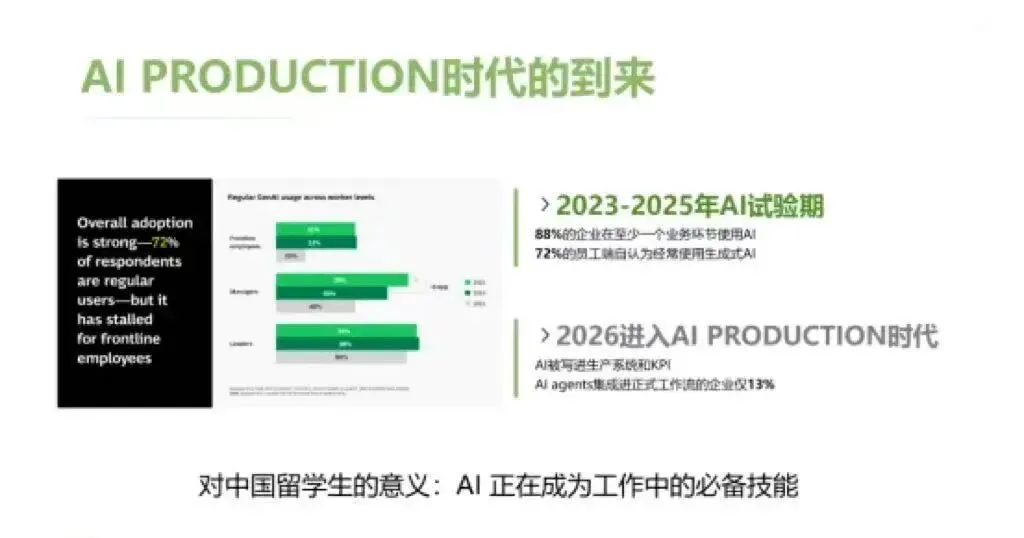 数据显示,88%的企业已在业务中经常性使用AI,但真正实现规模化的仅的38%,这一差距说明AI 实操能力已成为职场中新的竞争壁垒。