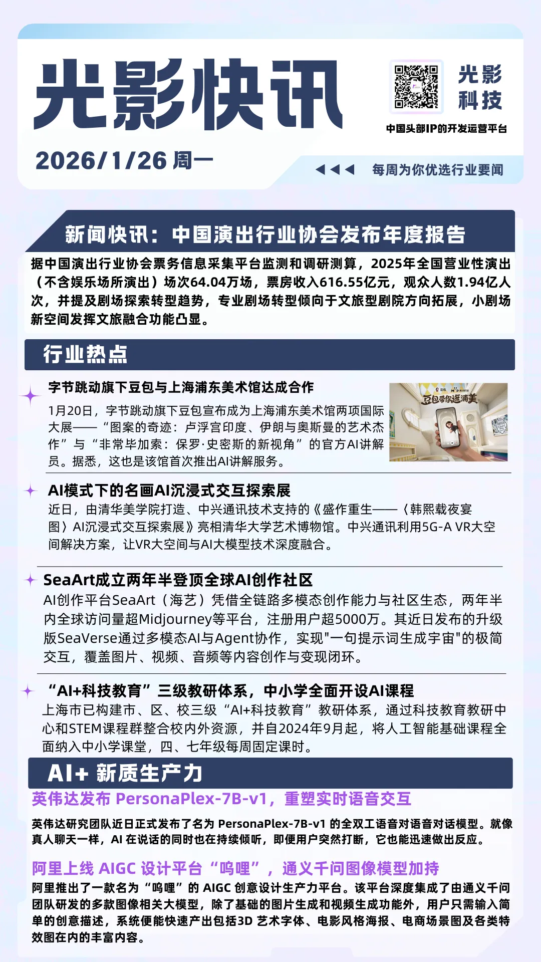 行业热点1内容、图片来源:【浦东美术馆】微信公众号行业热点2内容来源:【中兴通讯】微信公众号行业热点3内容来源:【新智元】【量子位】微信公众号