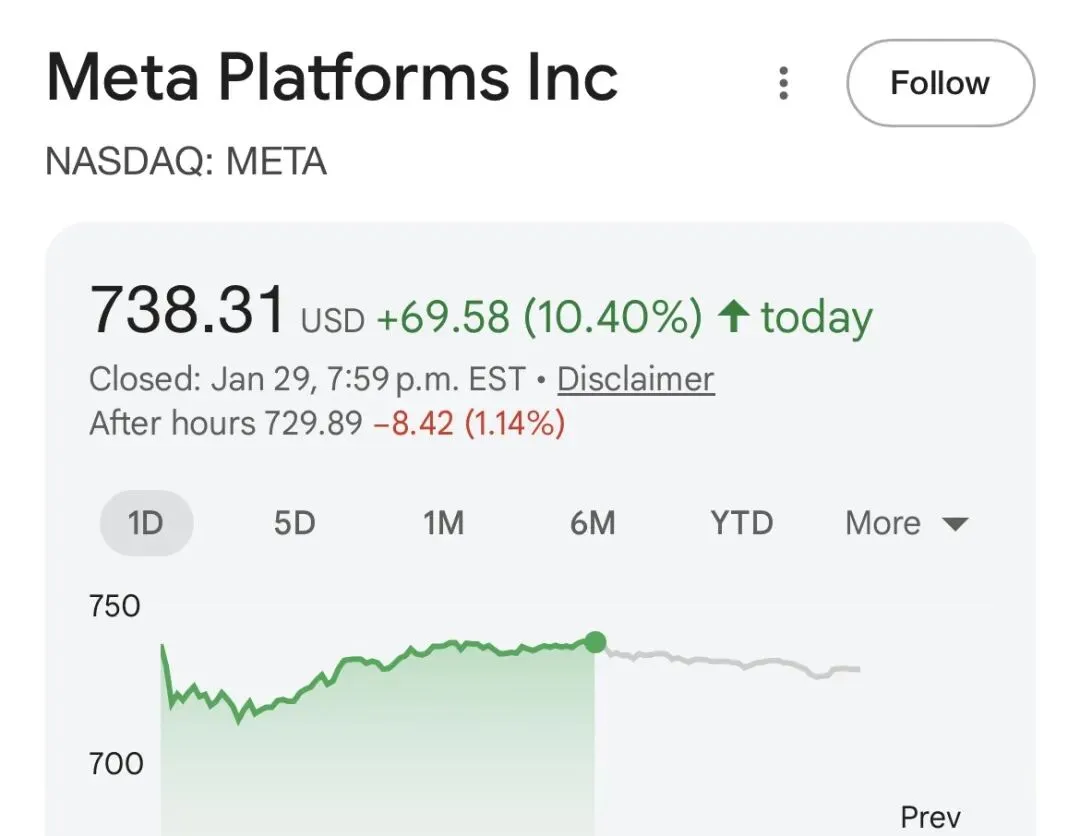 Meta1月28日盘后如期发布Q4财报,业绩超预期,股价次日大涨超过10%。正如在上一篇文章说的,