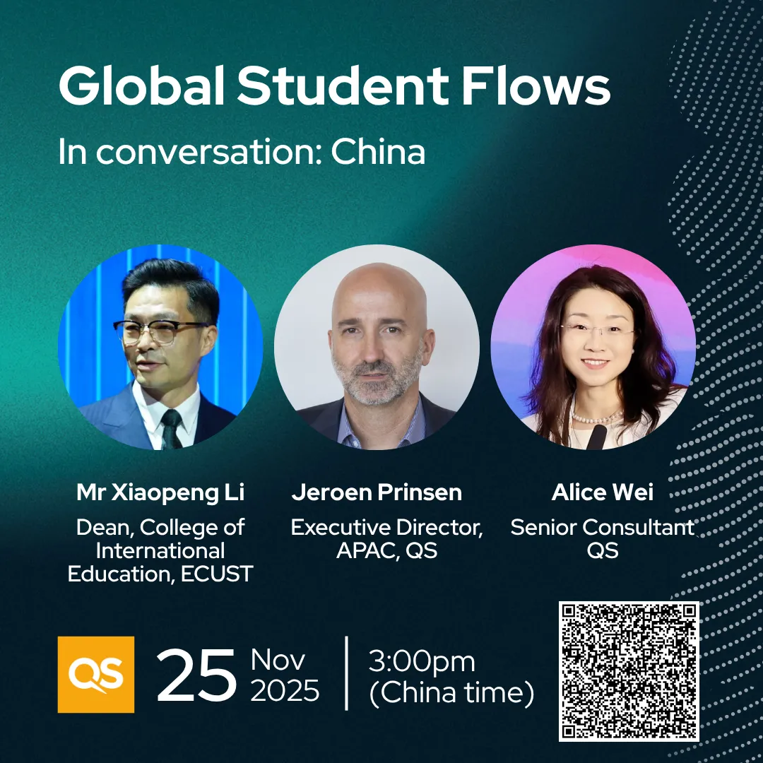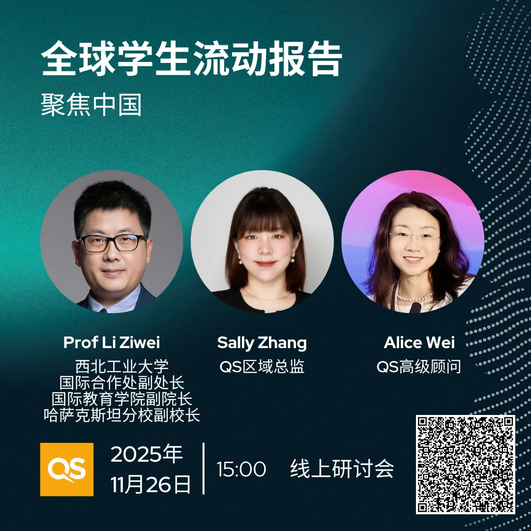 为了帮助中国高校及相关机构深入了解QS《全球学生流动报告:中国篇》,QS官方将于11月25日15:00举办英文线上研讨会;11月26日15:00举办中文线上研讨会,详细解读报告内容,并分析新兴趋势和学生偏好的变化,探讨未来五年塑造中国高等教育格局的战略机遇,为中国高等教育发展助力。