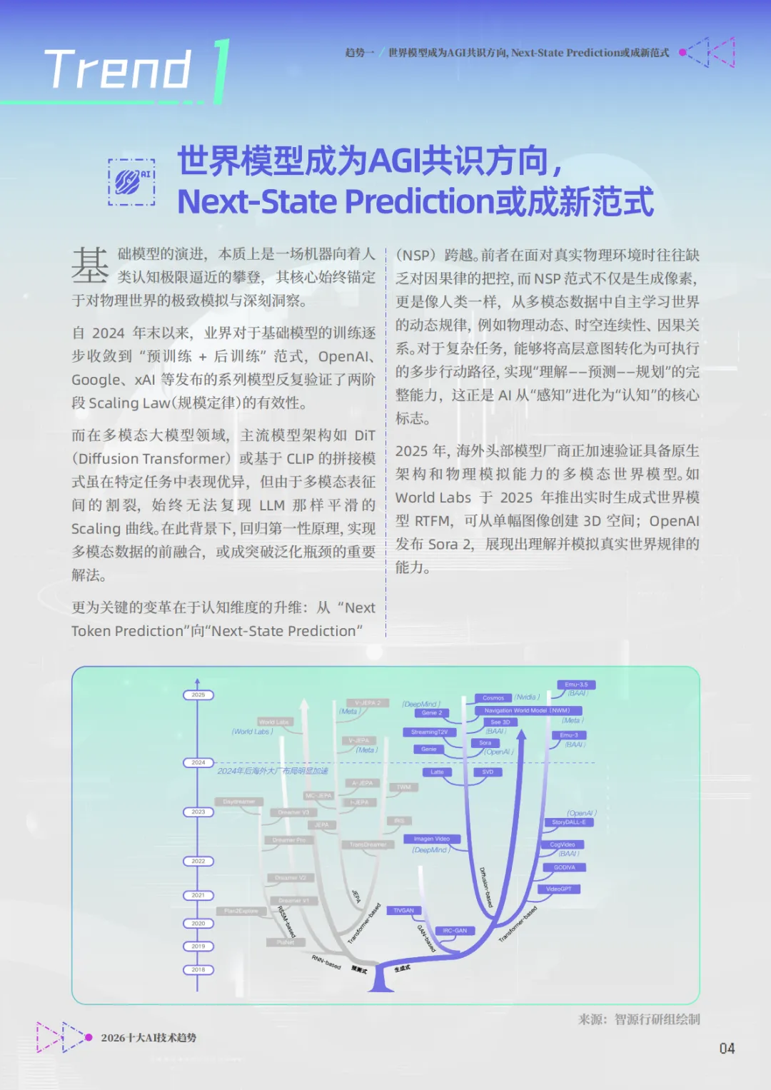 核心趋势:世界模型成为AGI共识方向,Next-State Prediction(NSP,下一状态预测)或成新范式。