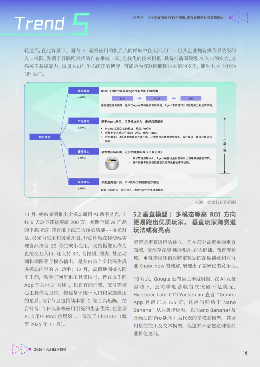 这不仅是功能整合,更是流量入口与生态控制权的重塑,可能催生AI时代的“新BAT”。同时,在健康、教育等高壁垒垂直领域,深耕行业Know-how的专用模型,凭借其高精度和高客户付费意愿,同样能创造出巨大的商业价值,实现“低频高价值”的成功。