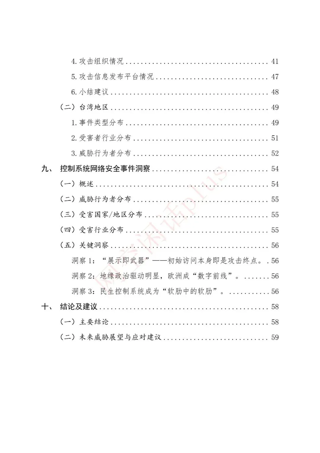 在对热点国家和地区暗网情报对抗进行详细分析的基础上,报告还提出了针对中国的具体建议,包括从事件类型、受害者行业、攻击组织等方面提出应对策略。最后,报告总结了“展示即武器”、“数字前线”的概念,并强调民生控制系统成为新的攻击焦点。