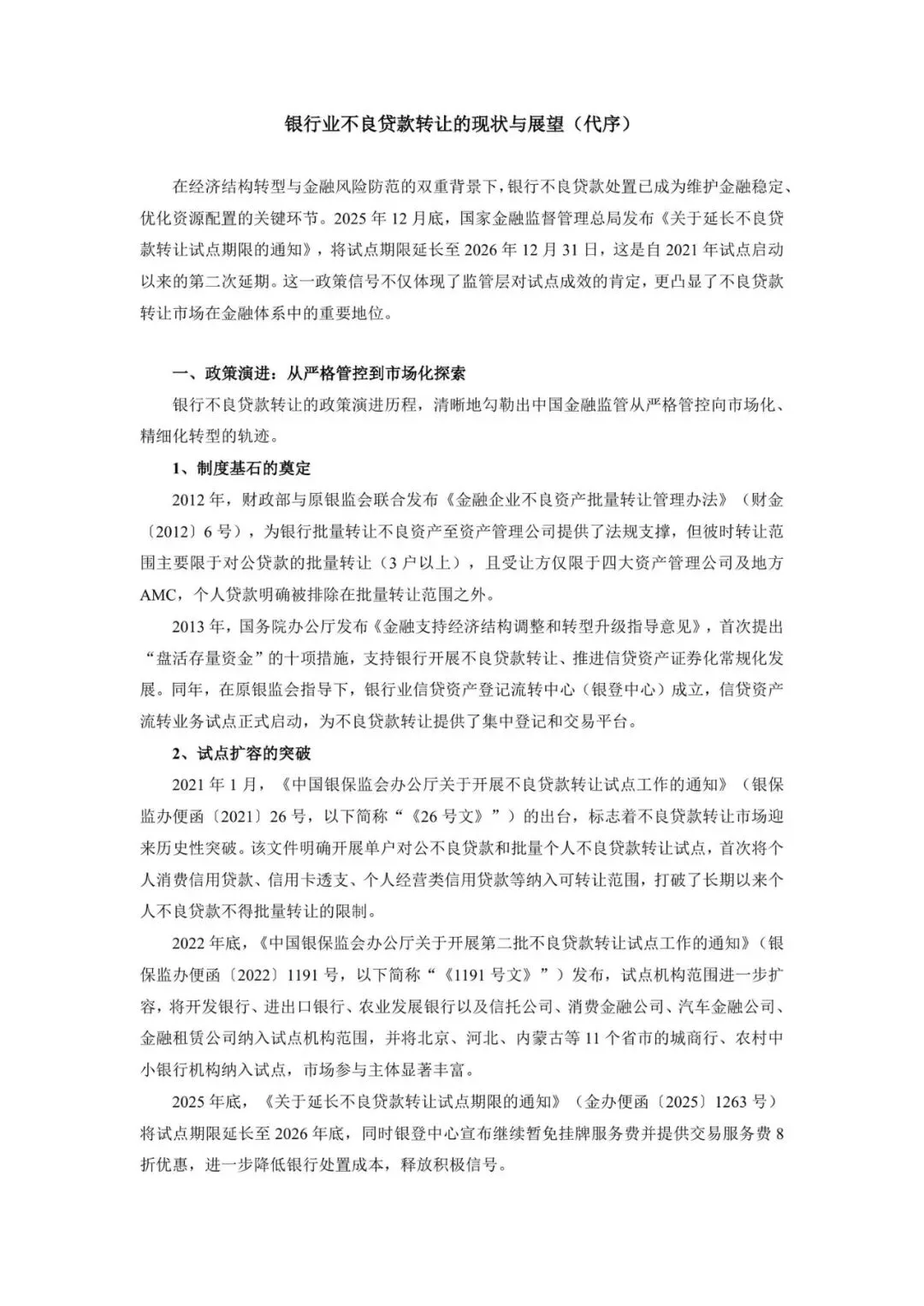 我国不良贷款转让政策经历了从严格管控到市场化、精细化探索的清晰轨迹。2012年的《金融企业不良资产批量转让管理办法》奠定了制度基石,但初期范围有限。2021年《关于开展不良贷款转让试点工作的通知》的出台是历史性突破,首次将个人不良贷款纳入可批量转让范围。此后,试点机构范围持续扩容,政策配套不断完善。2025年底,监管层再次延长试点期限至2026年底,并推出费用优惠,释放了积极的市场信号。这一系列政策演变,为不良贷款转让市场的规范化发展提供了坚实的制度保障。