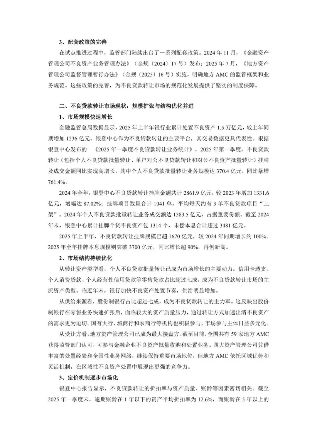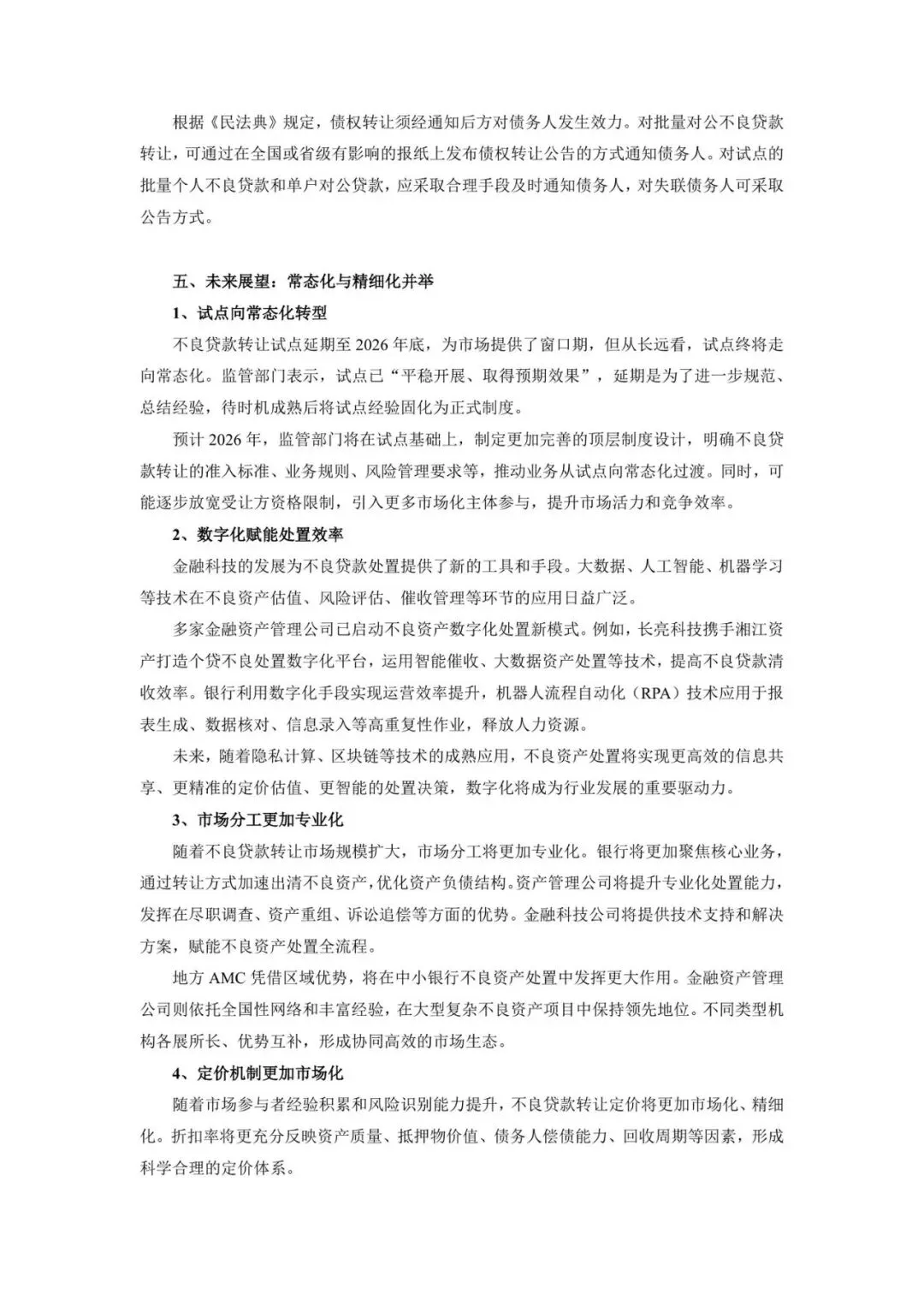 展望未来,不良贷款转让市场将呈现常态化、数字化与专业化并举的趋势。试点经验有望固化为正式制度,推动业务从试点走向常态。金融科技将深度赋能,大数据、人工智能等技术在资产估值、风险评估、智能催收等环节的应用将大幅提升处置效率。市场分工将更加精细,银行、资产管理公司、金融科技公司等各类主体将各展所长,形成协同生态。同时,定价机制将更趋市场化,监管框架也将持续完善,注重穿透式审查与标准化建设,以保障市场长期稳健运行。