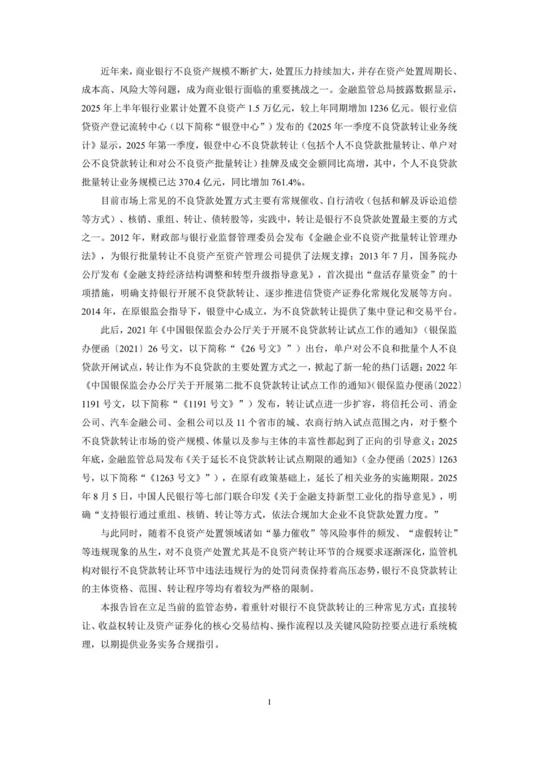 《不良贷款转让法律问题研究报告》由上海金融与发展实验室与上海市协力律师事务所联合发布。报告系统梳理了我国银行业不良贷款转让的政策演进、市场现状、主流模式与合规要点,并对未来发展趋势进行了展望。在当前经济结构转型与金融风险防范的背景下,不良贷款的有效处置对于维护金融稳定、优化资源配置具有关键意义。