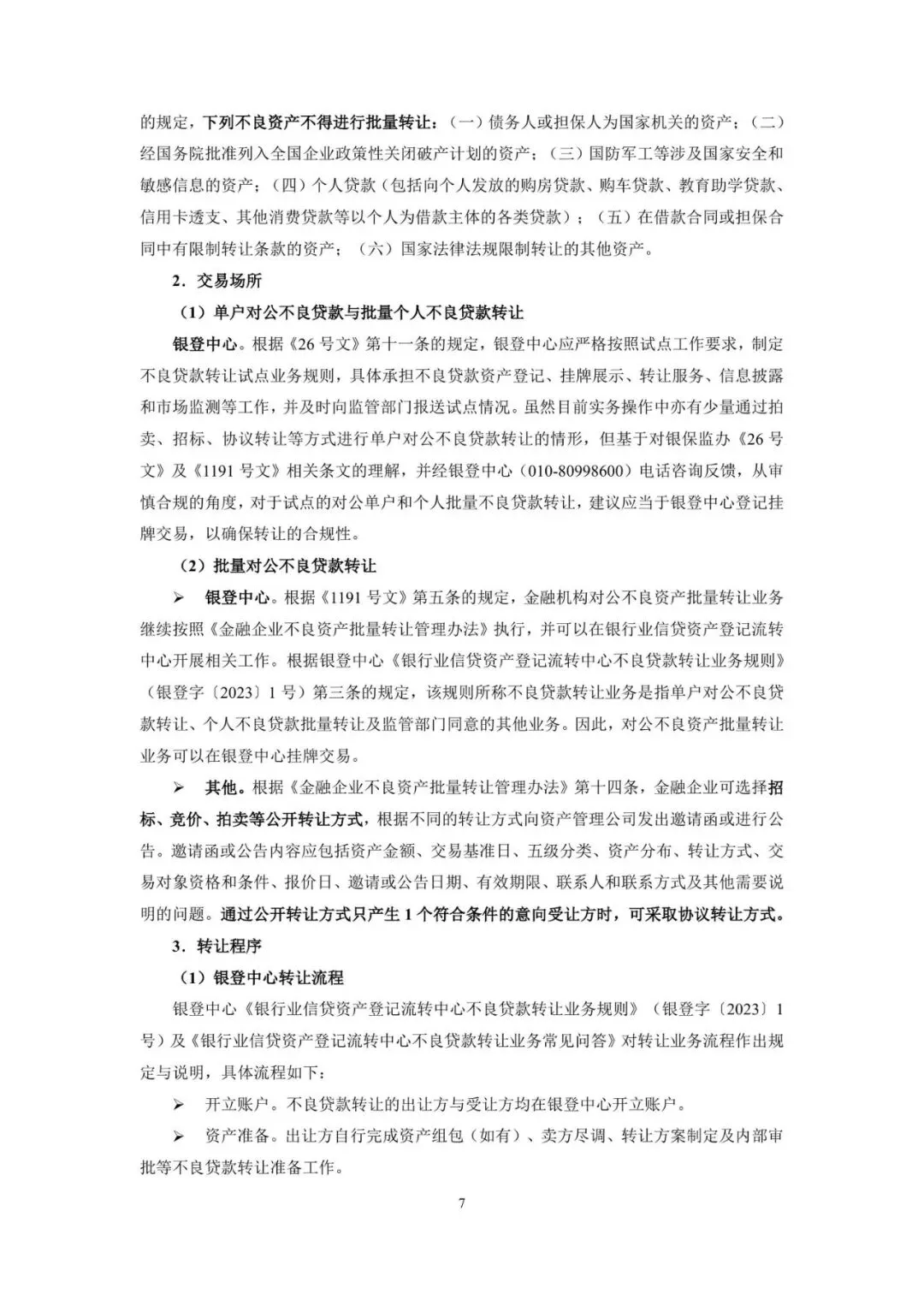 监管部门对不良贷款转让中的违法违规行为保持高压态势。合规的核心在于坚持真实性、洁净性、整体性的“三性”原则,严禁任何形式的虚假出表或抽屉协议。报告特别强调了规范反委托处置行为的重要性,不规范的保底清收安排可能使风险并未真实转移。同时,出让方需履行充分的信息披露义务,并依法及时通知债务人,以确保债权转让的法律效力。这些合规要点是市场健康发展的生命线。