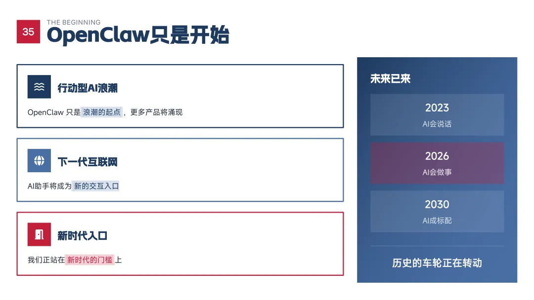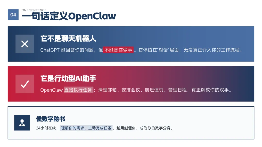 坦率地说,这并不是一份“追热点”的快餐内容。过去一段时间里,我们查阅了大量一手资料,跟踪全球社区的真实讨论,也在不断推翻和修正最初的判断。因为我们越来越清晰地意识到:OpenClaw 的意义,不只是某一个产品的爆红,而是 AI 正在从“会说话”,真正迈向“会做事”的关键拐点。