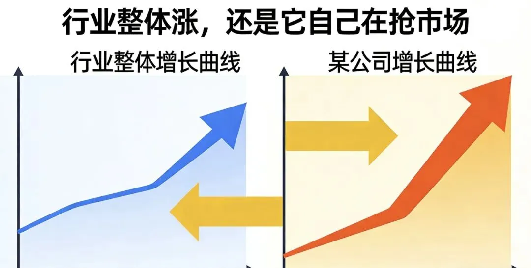 而是:行业一起涨,还是它在抢市场?