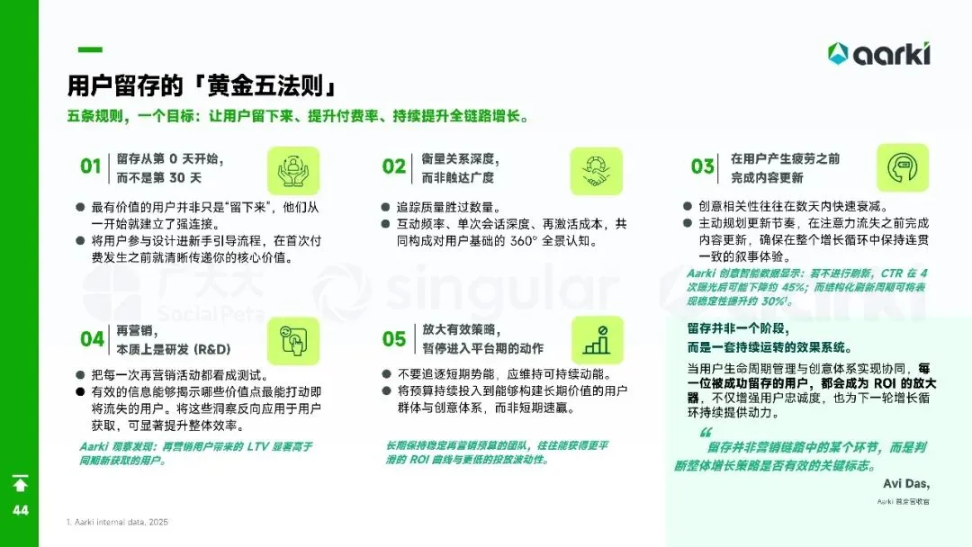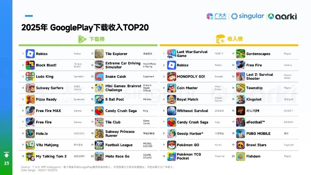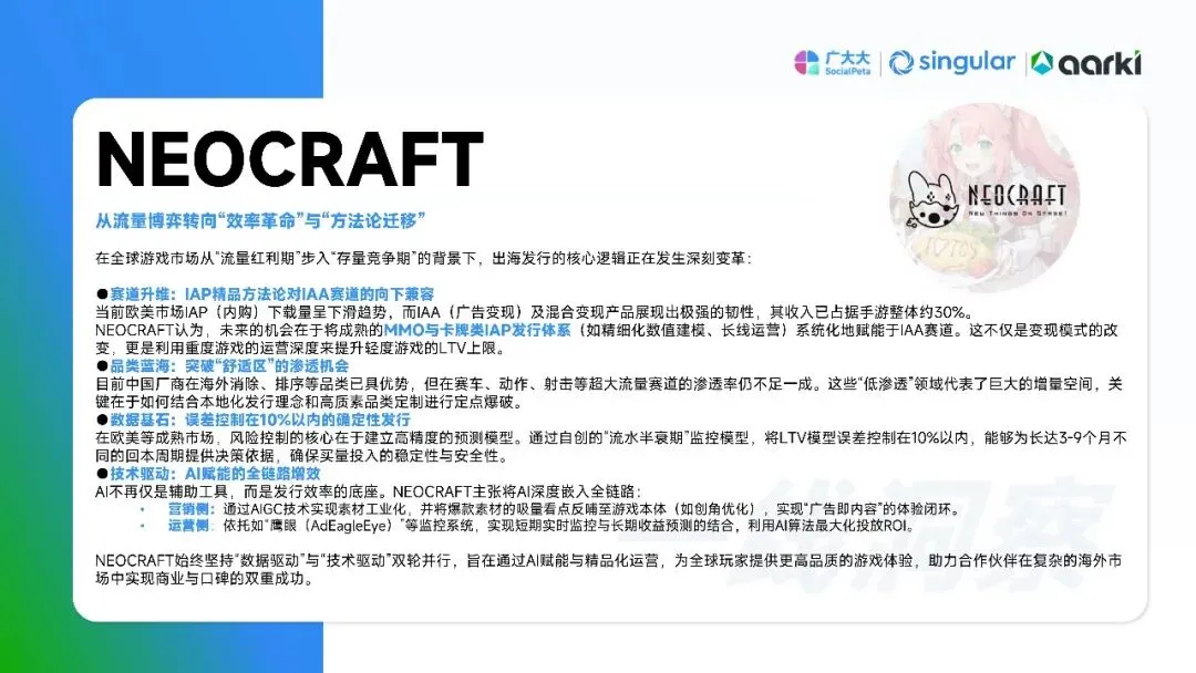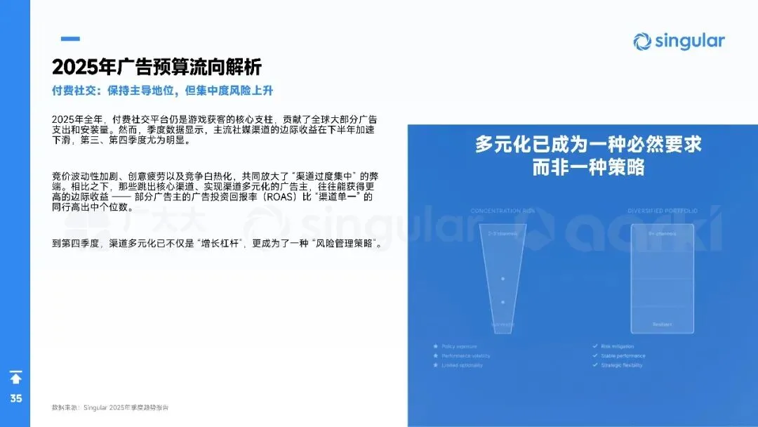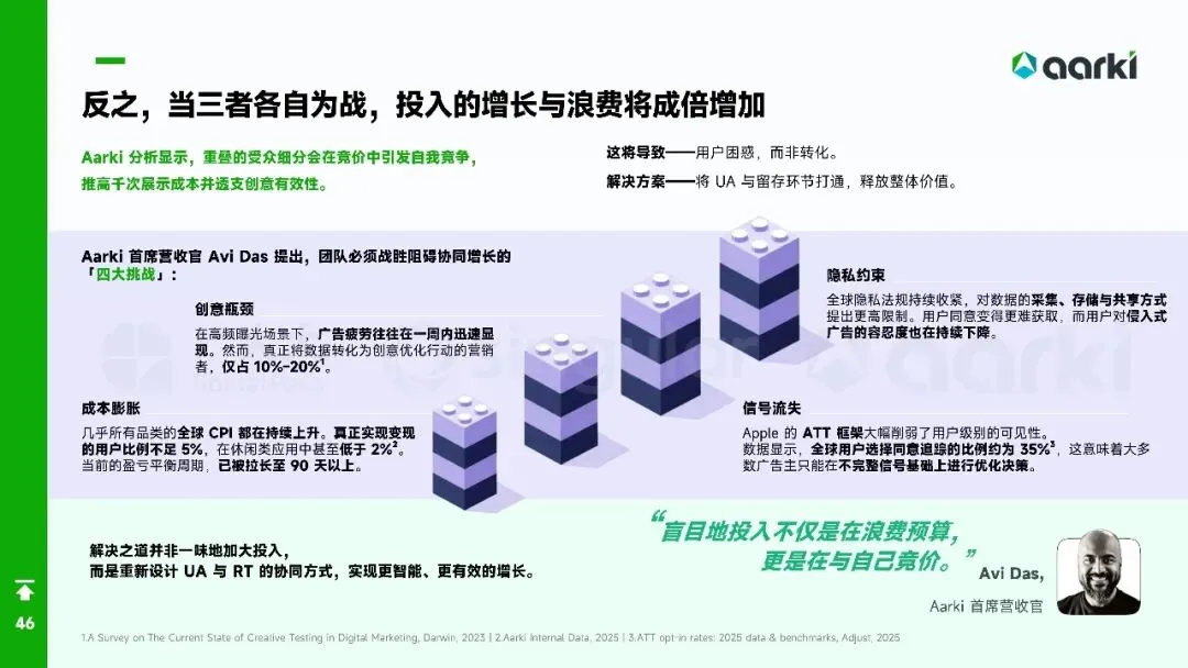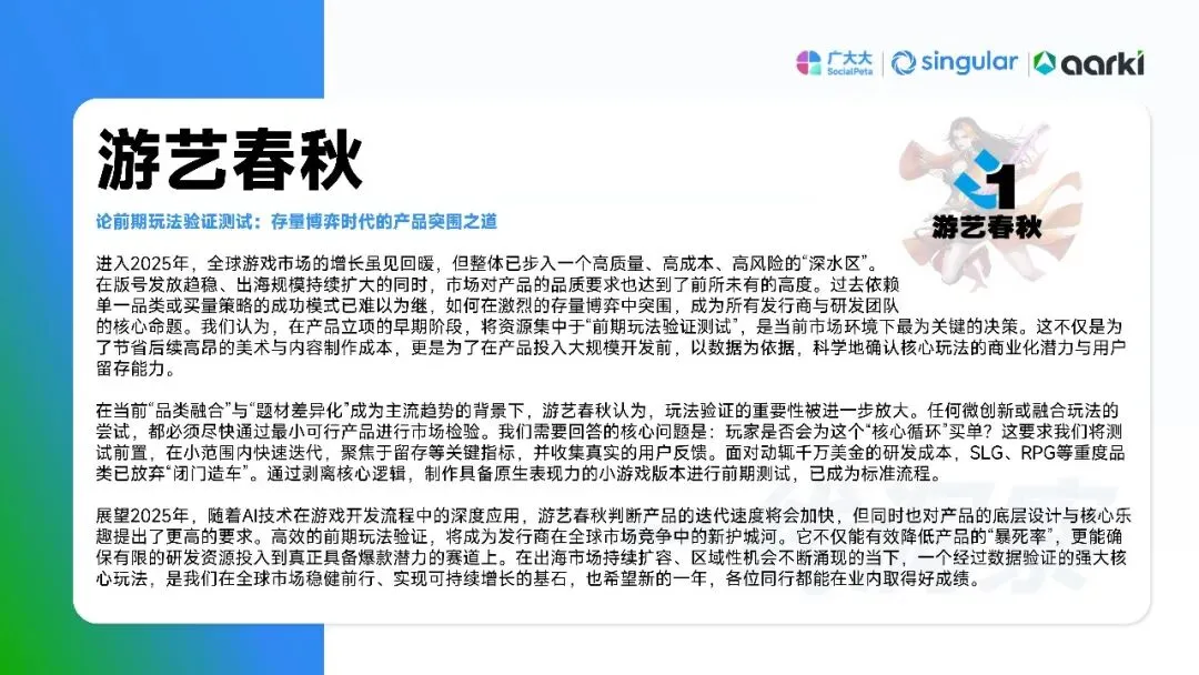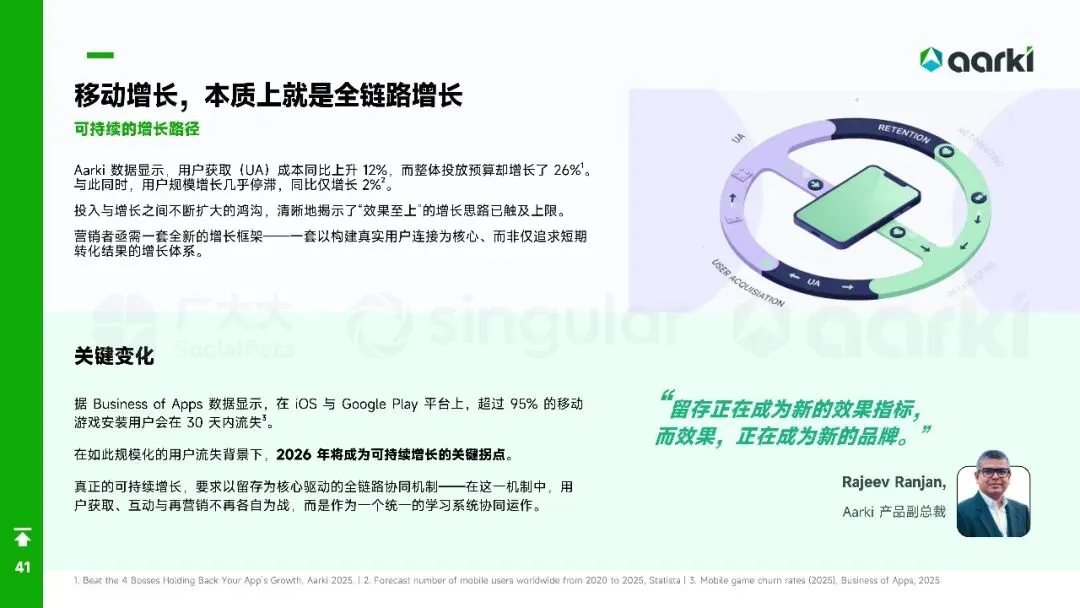 平台侧安卓拉量、iOS提价,Meta系渠道集中度再升,多元化买量成风控刚需。中国出海收入破204亿美元,SLG+合成双引擎,美日韩稳盘,中东拉美接棒;小游戏出海仍“万里挑一”,TikTok平台被寄望成2026新蓝海。核心启示:留存从第0天算起,创意迭代速度决定ROI,AI全链路赋能素材、出价、运营一体化,存量精耕替代粗放买量。