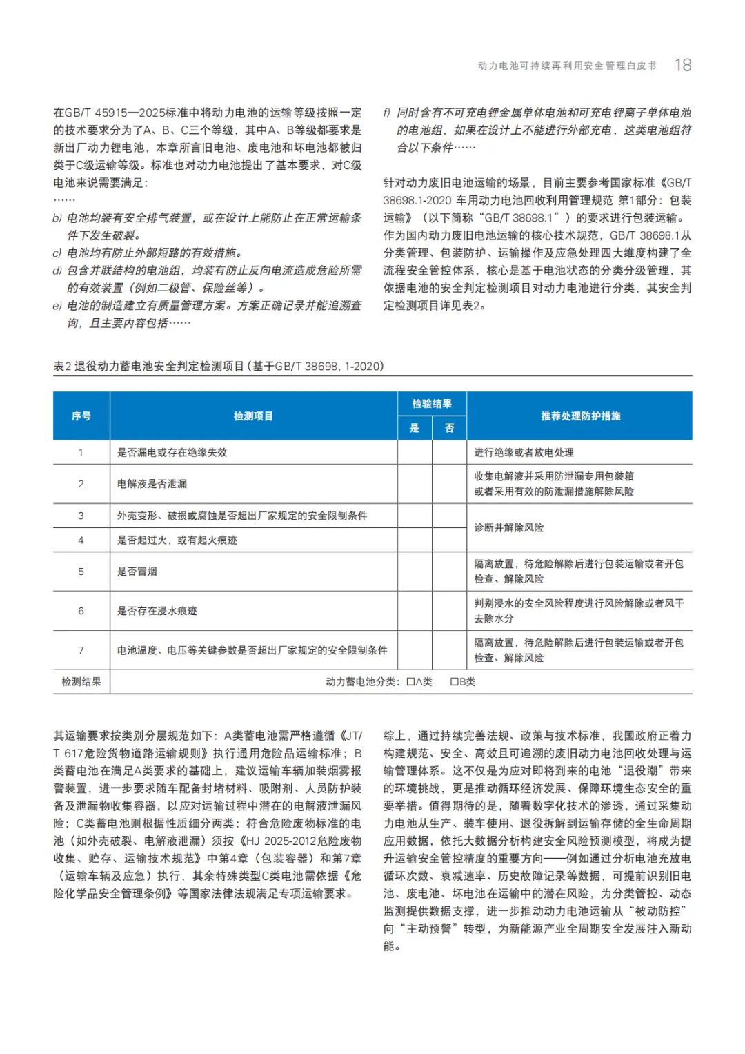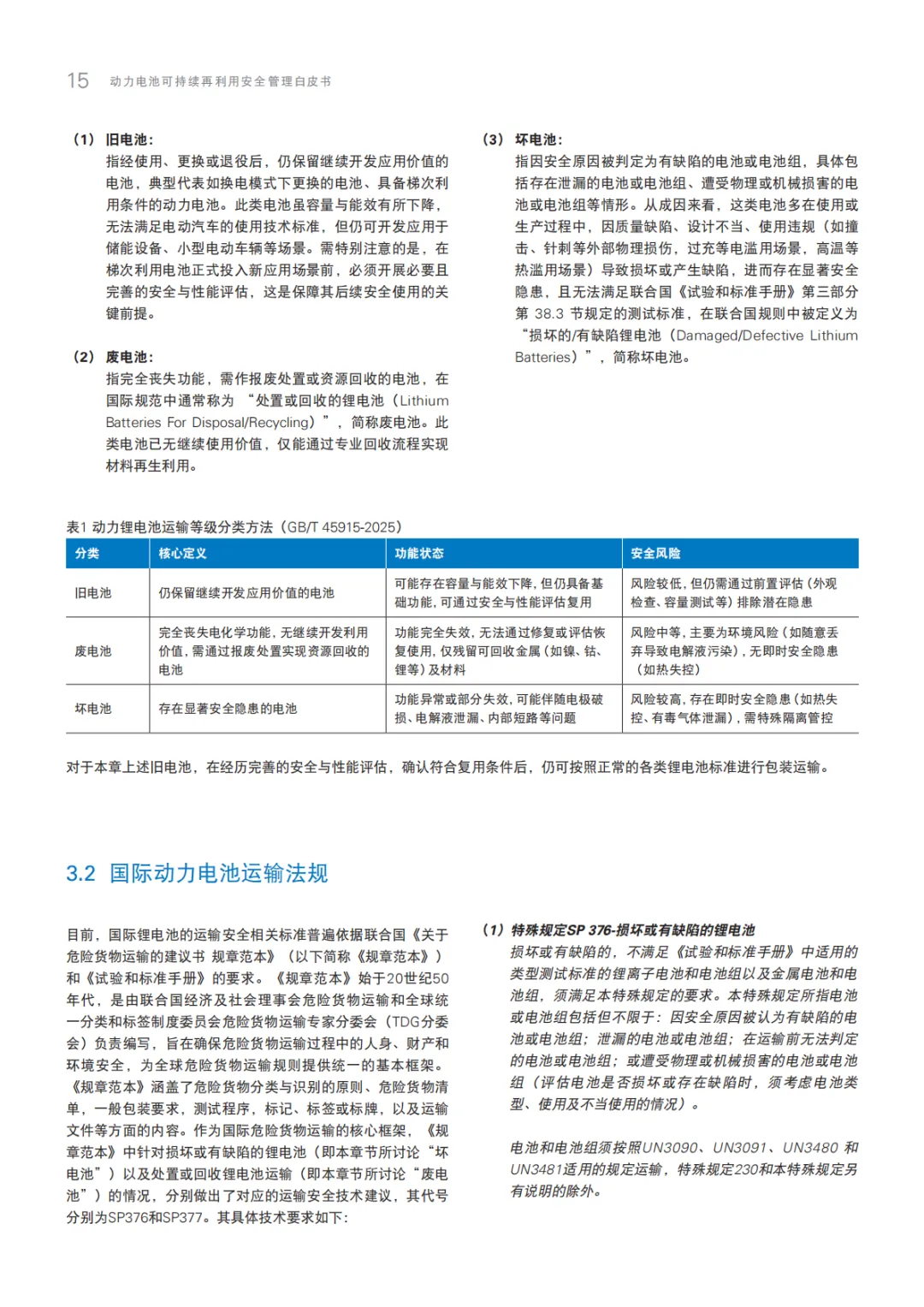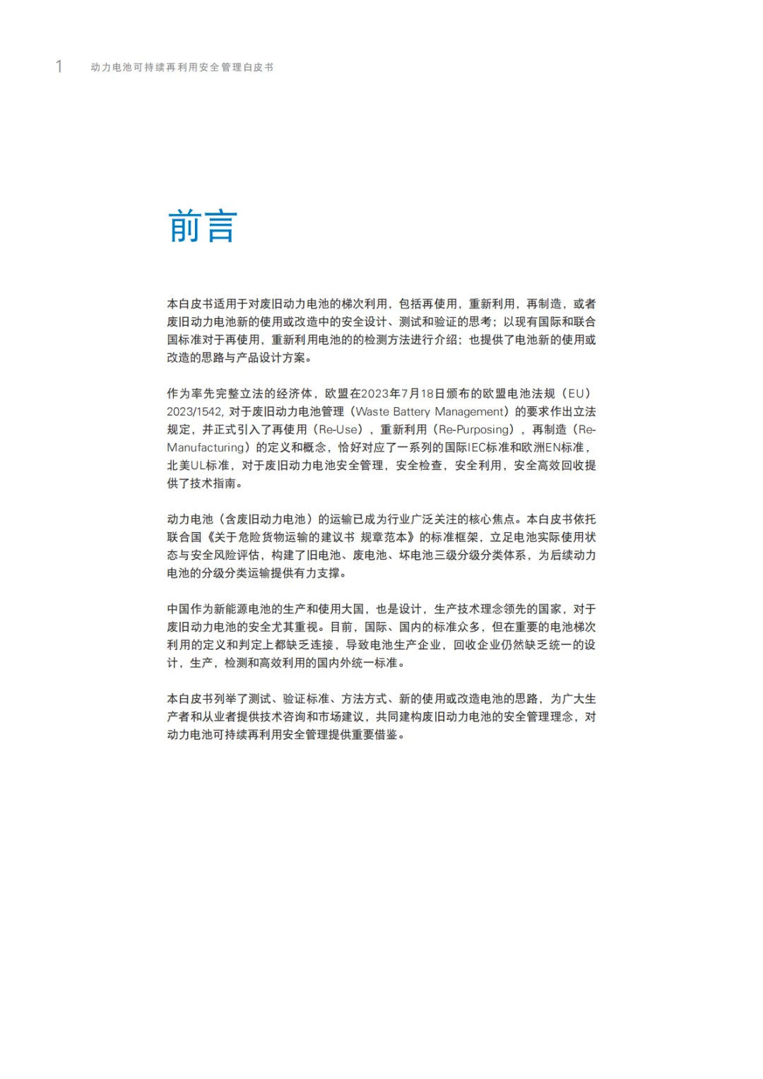 《2025动力电池可持续再利用安全管理白皮书》围绕动力电池梯次利用全生命周期安全管理展开,覆盖全球行业格局、中外政策体系、商业技术趋势、运输安全规范、欧美安全检测标准及车规级整包储能安全设计六大板块。明确旧废坏电池分级分类标准、关键测试方法与全链条安全方案,紧扣碳足迹管理、新国标安全要求等行业热点,为产业标准化、合规化发展赋能,助力“双碳”目标落地与新能源产业可持续转型。