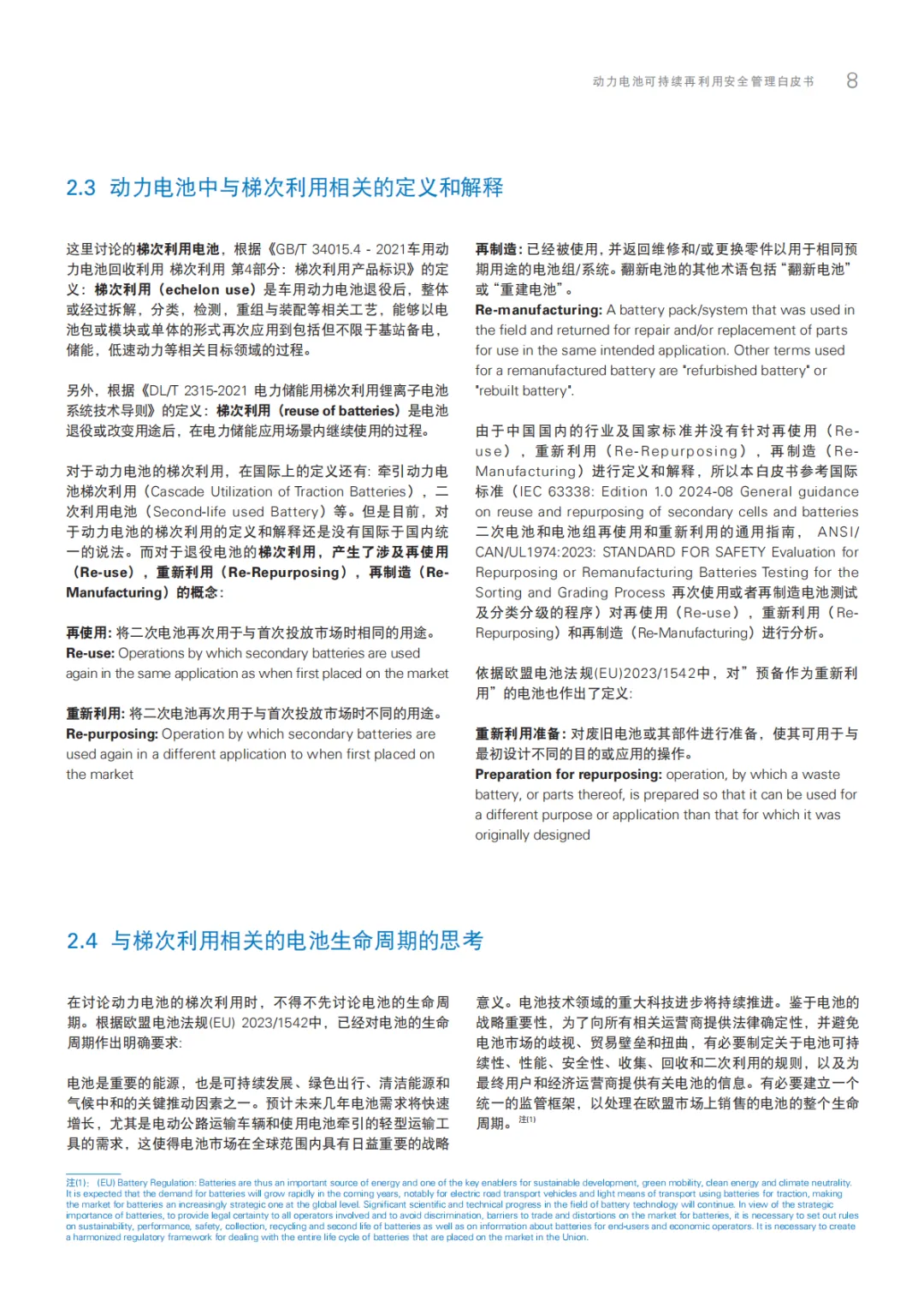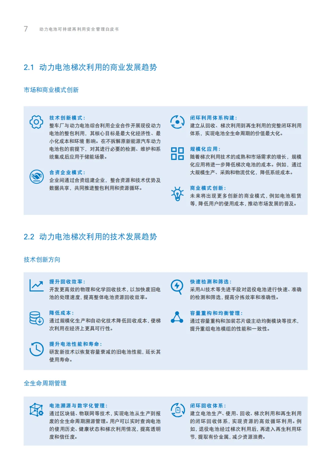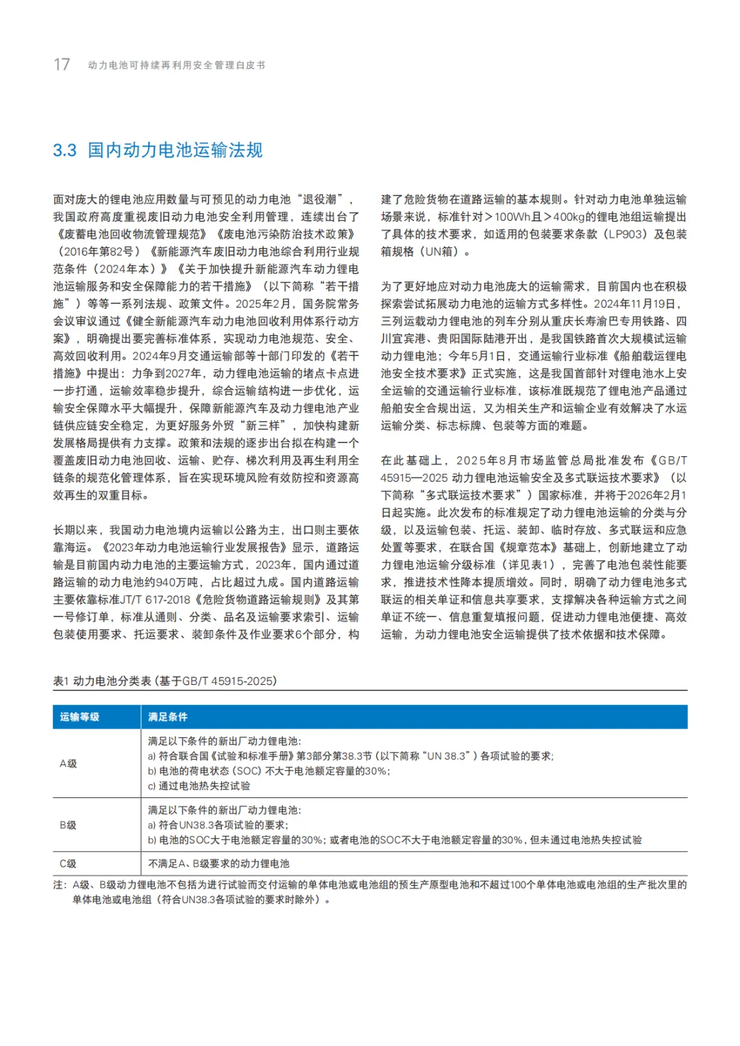 《2025动力电池可持续再利用安全管理白皮书》围绕动力电池梯次利用全生命周期安全管理展开,覆盖全球行业格局、中外政策体系、商业技术趋势、运输安全规范、欧美安全检测标准及车规级整包储能安全设计六大板块。明确旧废坏电池分级分类标准、关键测试方法与全链条安全方案,紧扣碳足迹管理、新国标安全要求等行业热点,为产业标准化、合规化发展赋能,助力“双碳”目标落地与新能源产业可持续转型。