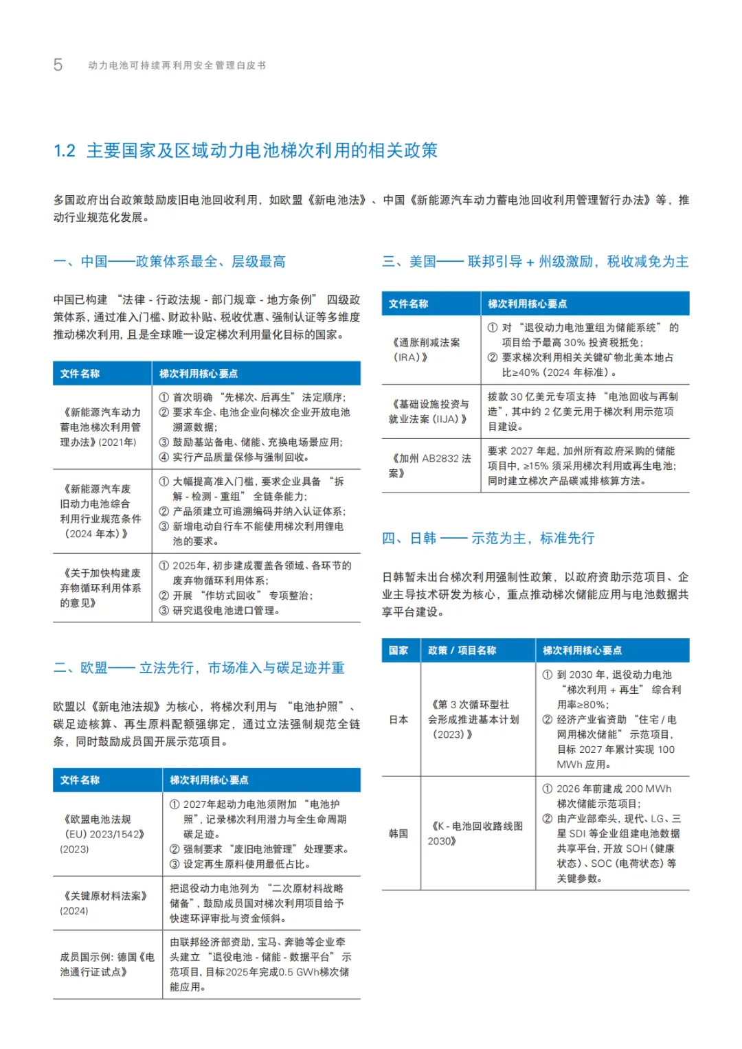 2.中、欧、美在动力电池梯次利用政策上的核心差异体现在哪里?