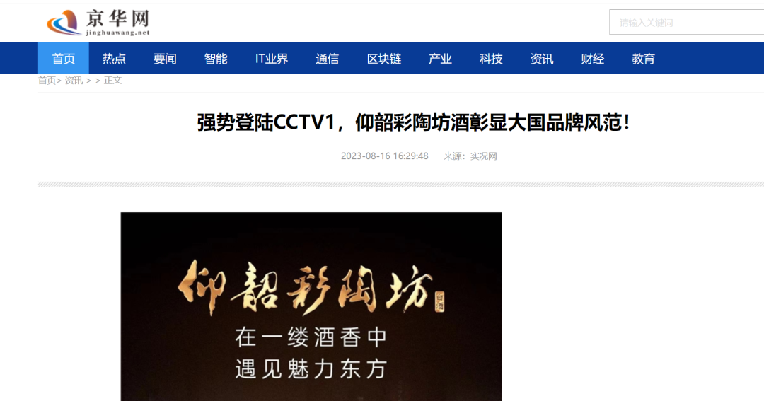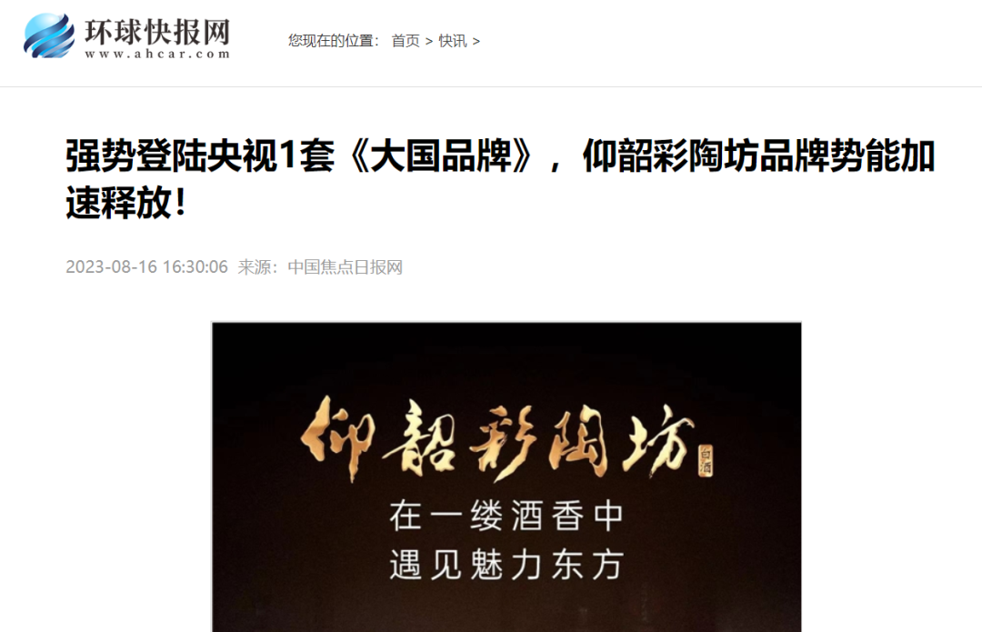 近日,仰韶酒业登陆《大国品牌》,品牌故事正式在CCTV-1播出,近800家国内外知名媒体竞先点赞、报道,同时微信朋友圈转载视频25000余次,热度还在持续扩散。