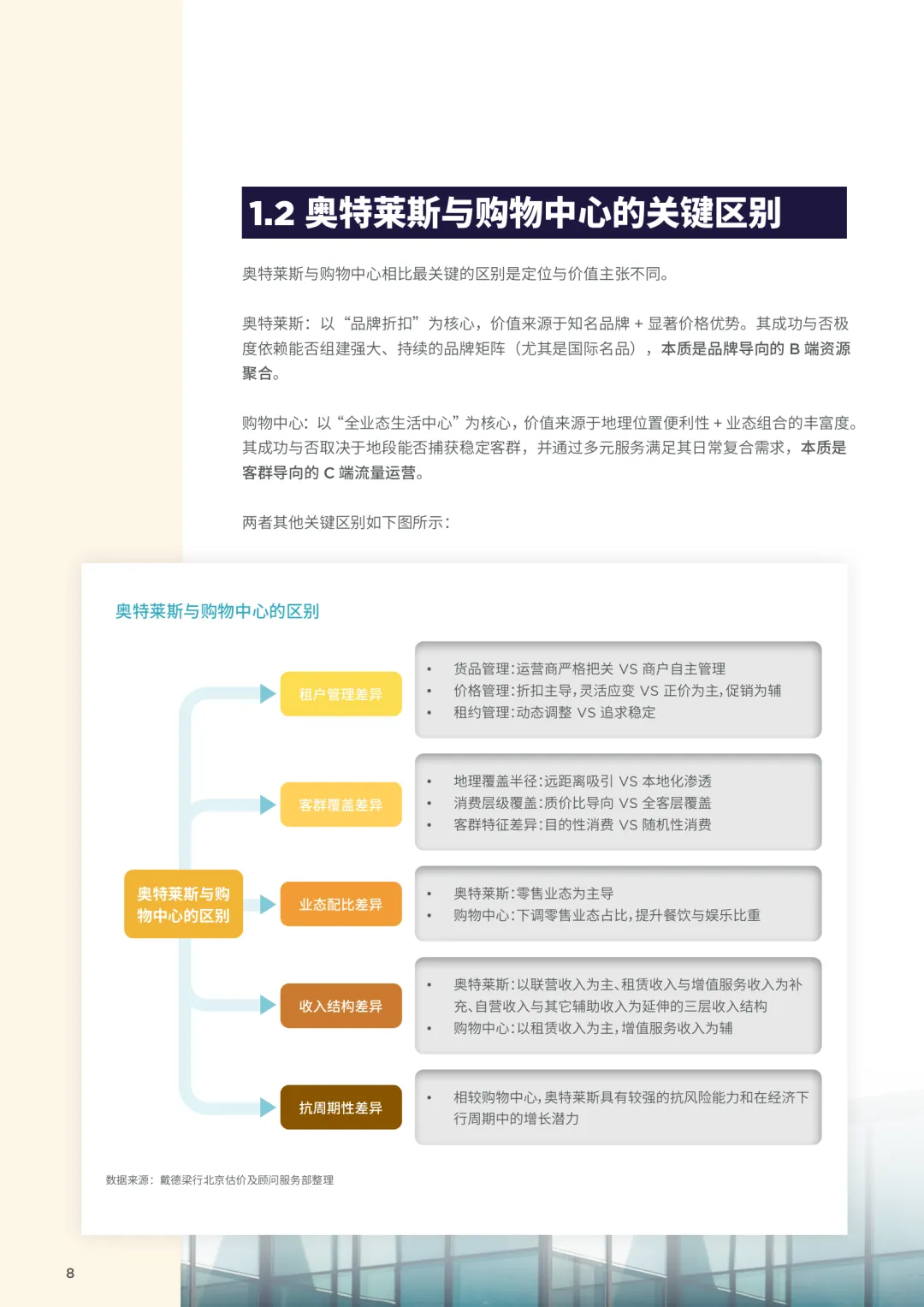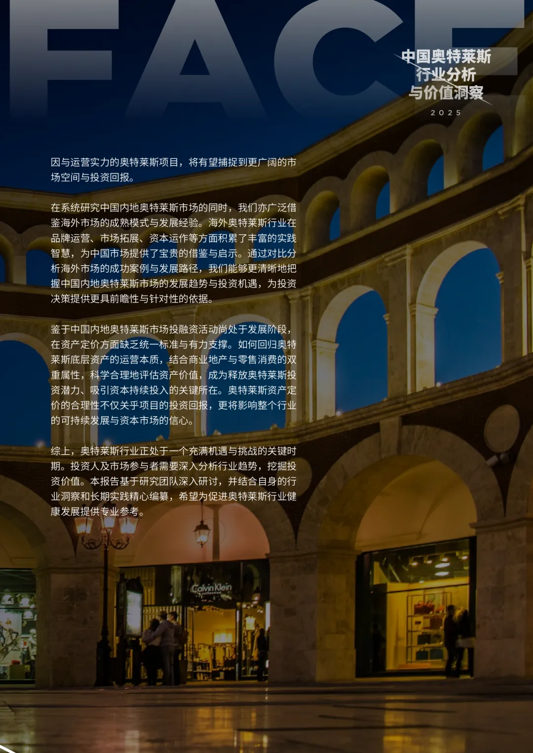 奥特莱斯是一种融合商业地产与零售消费的特殊商业模式,近年来在全球范围内快速发展,成为消费者获取高性价比商品的重要渠道。它不仅改变了传统商业地产的格局,也推动了消费升级和市场活力的提升。随着消费需求的不断变化和零售模式的创新,奥特莱斯正迎来新的发展机遇。从投资与资产运营的角度看,奥特莱斯具有重要的战略价值。中国内地市场在规模扩张、品牌引进和运营管理等方面取得显著进展,但面对日益激烈的市场竞争和消费升级趋势,行业仍需持续探索和创新。特别是在投融资环境日趋复杂的背景下,对资产价值的准确评估显得尤为重要。奥特莱斯需要在品牌组合、空间设计和数字化服务等方面实现突破,以满足不同消费群体的个性化需求。对于投资者而言,选择具备创新能力和良好运营实力的项目,有助于把握更大的市场空间和投资回报。借鉴海外成熟市场的经验,有助于更清晰地理解中国内地奥特莱斯的发展趋势和投资机会。中国内地奥特莱斯市场在资产定价方面缺乏统一标准,如何回归运营本质,结合商业地产与零售消费的双重属性,科学评估资产价值,是释放投资潜力的关键所在。奥特莱斯行业正处于机遇与挑战并存的重要阶段,需要深入分析市场趋势,挖掘投资价值,推动行业的可持续发展。