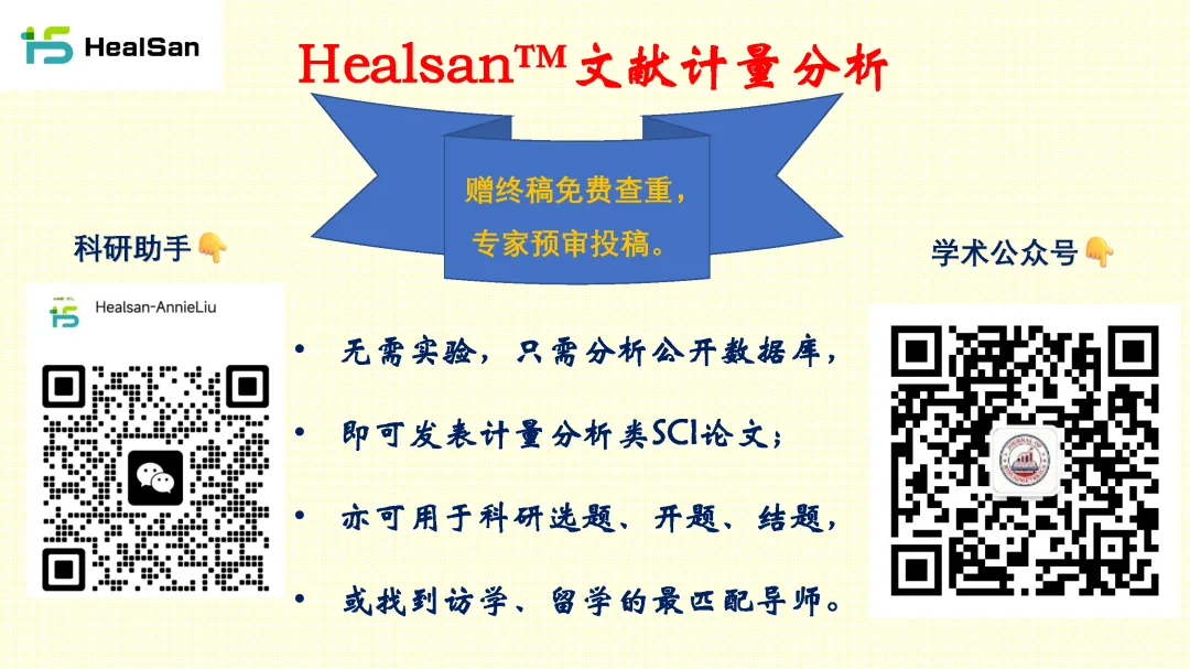 如果您也需要对自己公司的产品或者对自己研究的领域做系统梳理,可以找美国Healsan恒祥医学科技做文献计量分析。