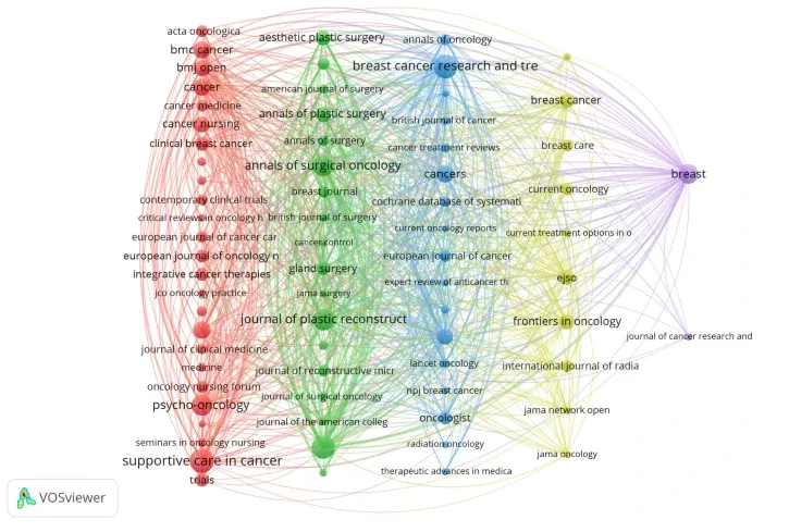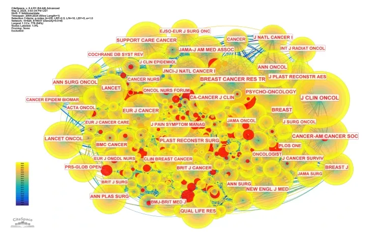 《Supportive Care in Cancer》位居首位,其次为《Breast Cancer Research and Treatment》和《Plastic and Reconstructive Surgery》。