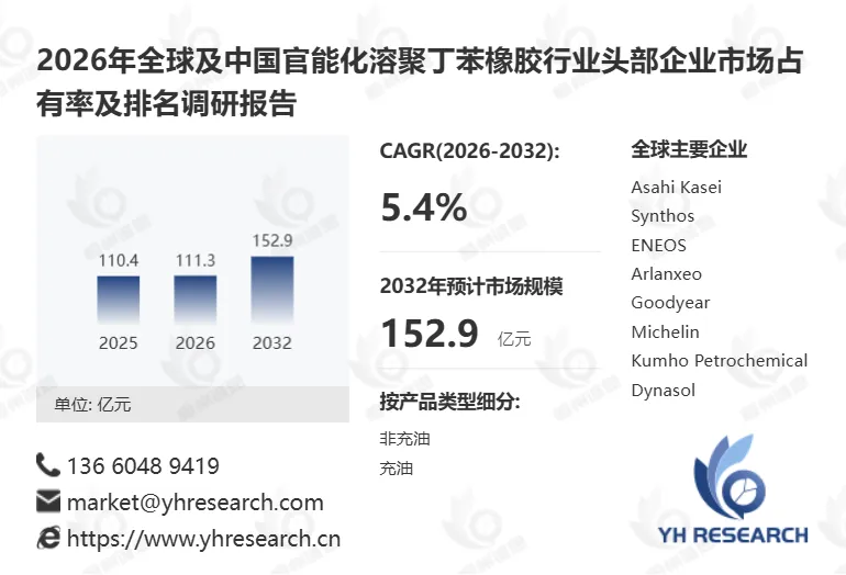 《2026年全球及中国官能化溶聚丁苯橡胶行业头部企业市场占有率及排名调研报告》本文调研和分析全球市场发展现状及未来趋势,核心内容如下: