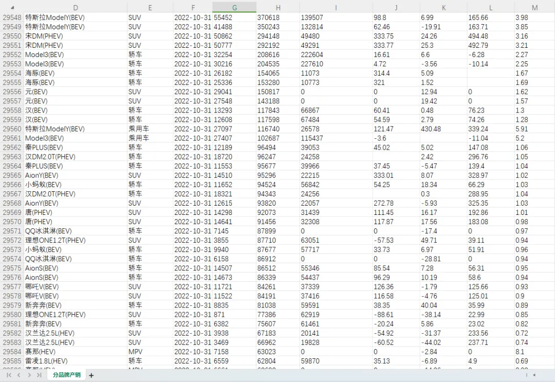 一、汽车分品牌产销(95家车企,768个车型,201512-202210月度数据)