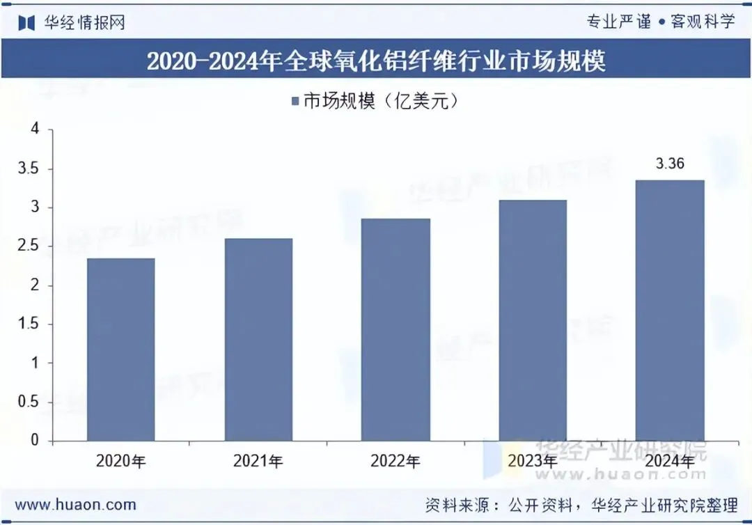 得益于航空航天、新能源汽车等领域的强劲需求,叠加政策对高性能材料的扶持,2024年全球氧化铝纤维行业市场规模已超3亿美元,其中连续氧化铝纤维作为高附加值品类占比较高。当前市场国产化率提升正为市场注入新增长动力,预计未来数年将保持6.7%以上的年复合增长率。