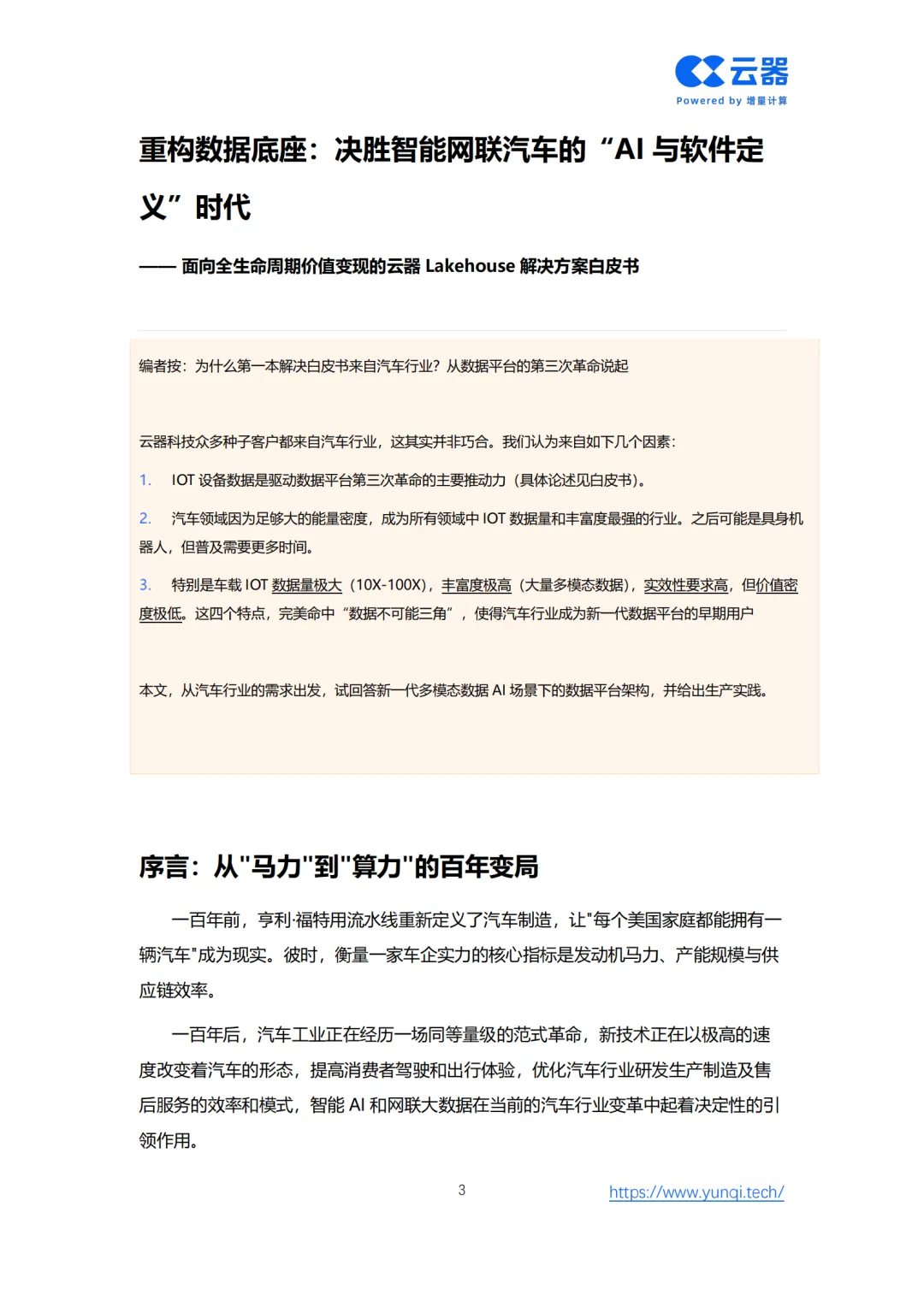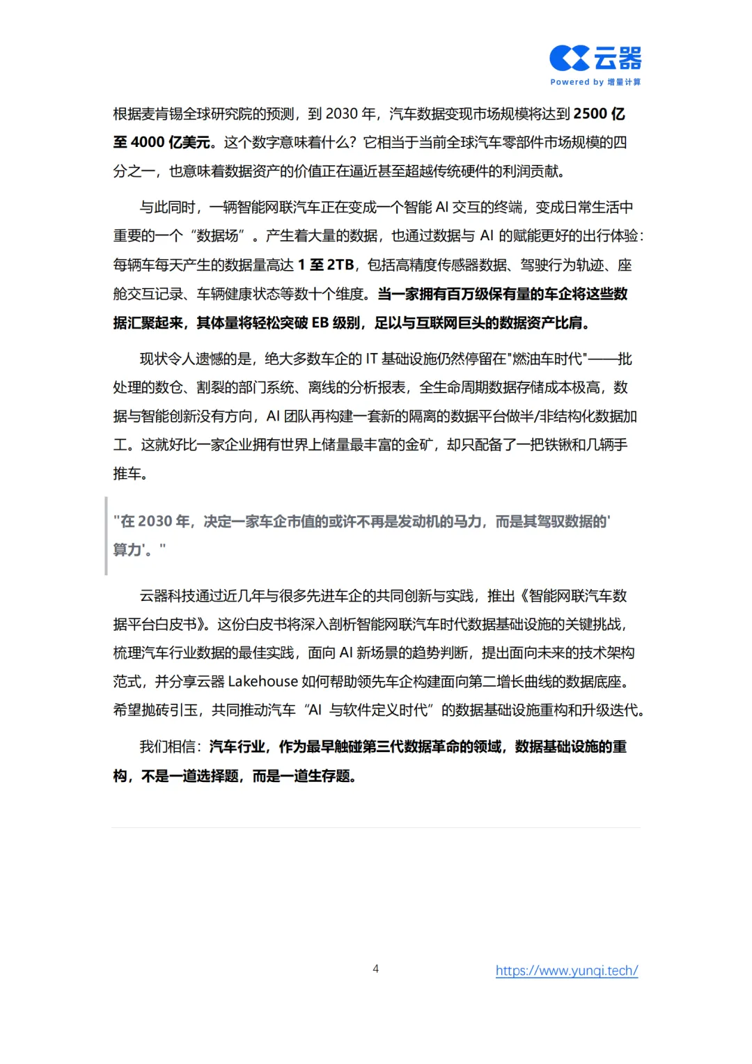 面对汽车产业百年未有之大变局,数据已成为驱动创新的核心生产要素。云器科技发布的《智能网联汽车数据平台白皮书》系统性地解构了车企在智能网联时代面临的数据挑战与机遇。