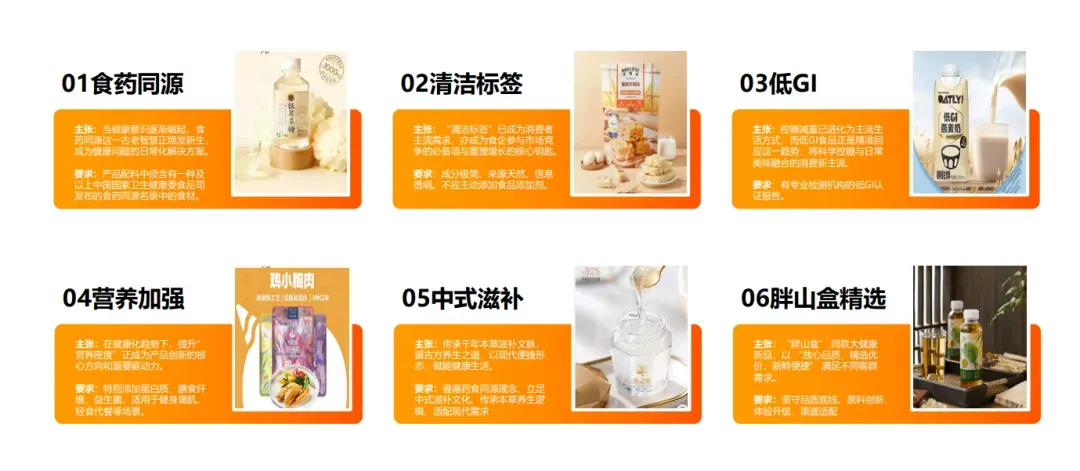 会上,我们将围绕「食药同源、清洁标签、低GI食品、营养加强、中式滋补、胖山盒精选」六大“大健康黄金赛道”发布「TOP100大健康趋势爆品」评选榜单,为当下大健康食品的优质成果做集中检阅,为赛道未来发展做专业导航。