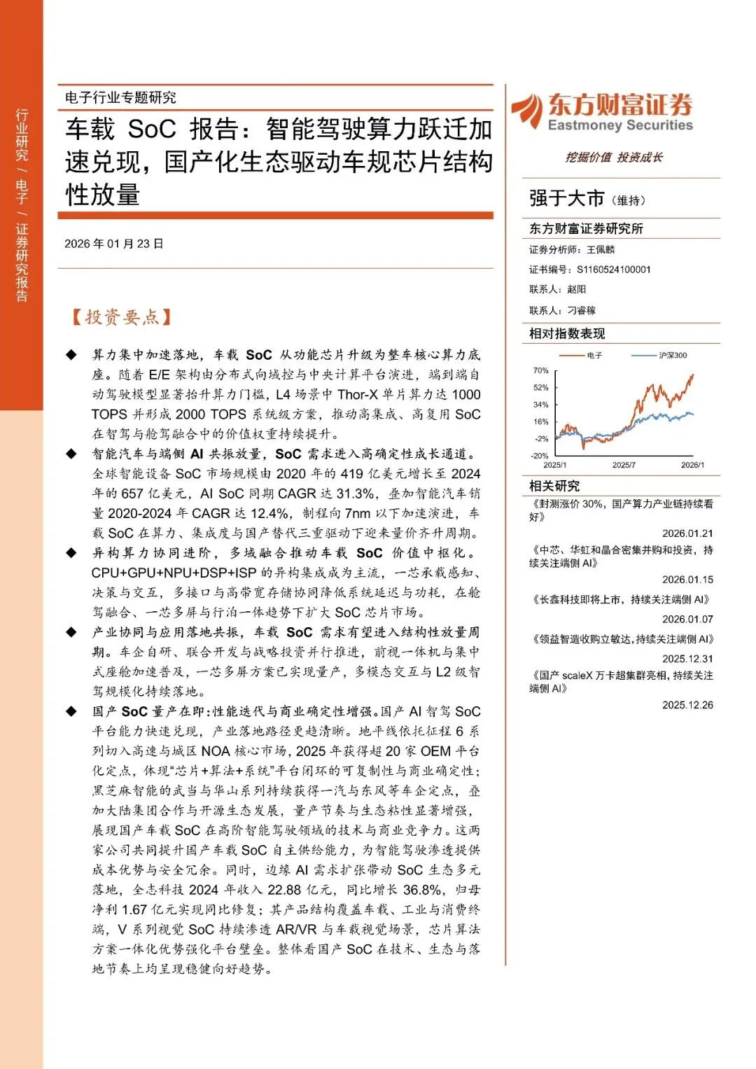 电子行业专题研究-车载SoC报告:智能驾驶算力跃迁加速兑现,国产化生态驱动车规芯片结构性放量
