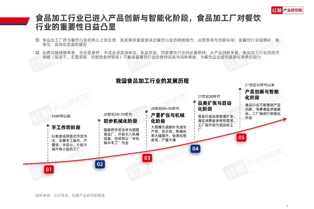 食品加工行业已进入产品创新与智能化阶段,食品加工厂对餐饮行业的重要性日益凸显