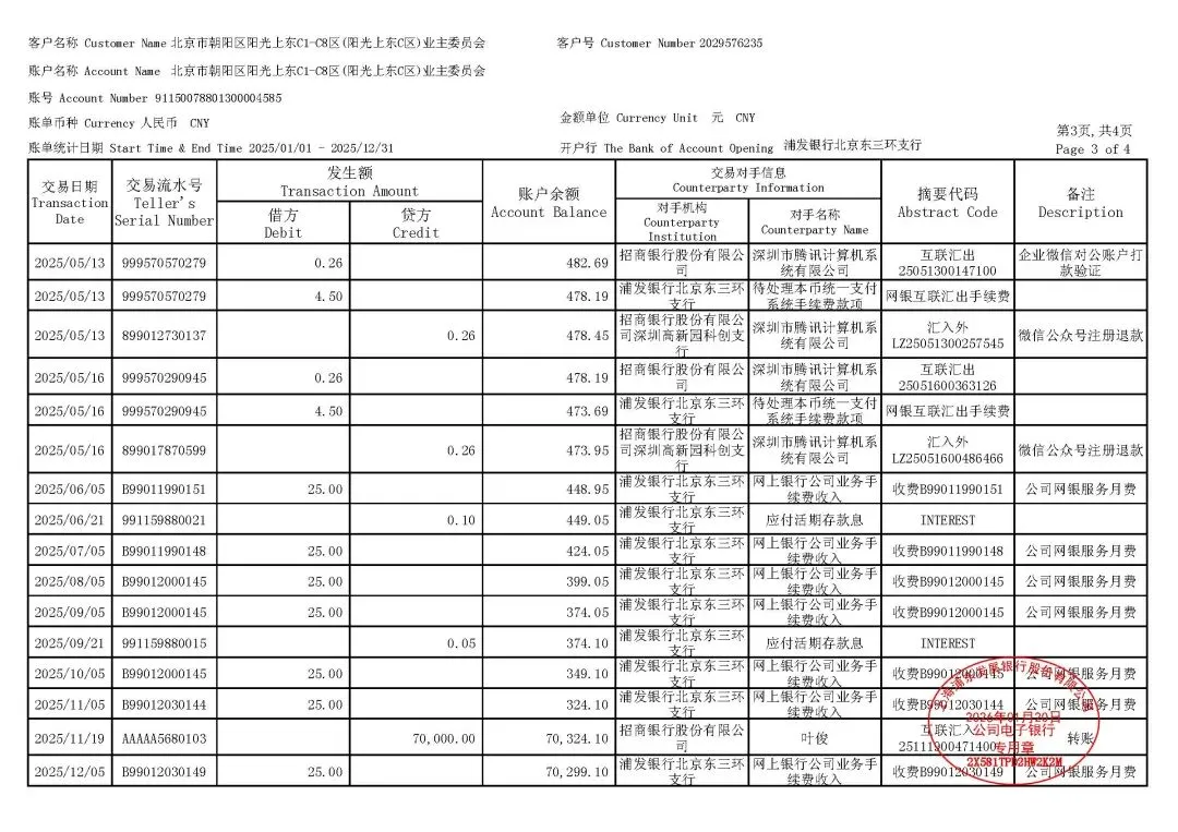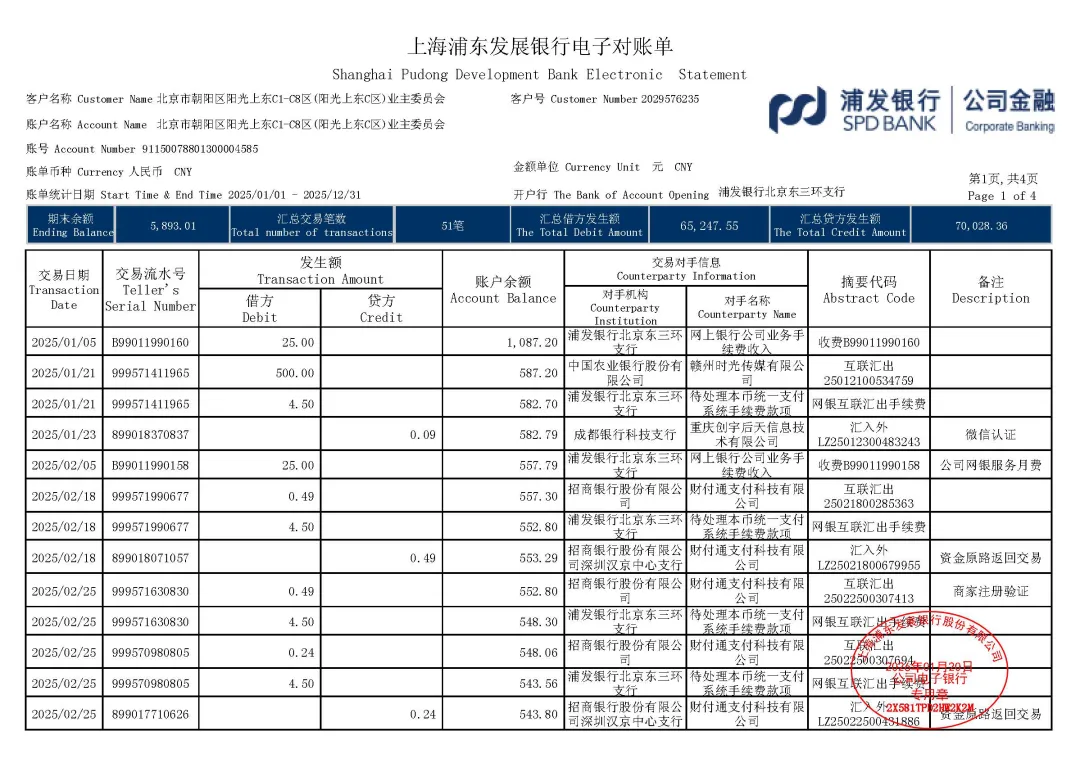 1.所有收支均为小区公共事务相关资金(含业主捐款、账户利息等),专款专用,全部存入业委会专用账户