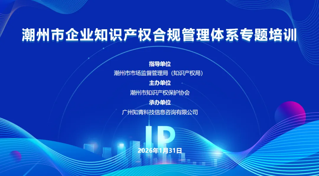 为进一步服务企业,提升企业系统掌握知识产权管理体系,提升创新成果保护能力,在潮州市市场监督管理局(知识产权局)指导下,由潮州市知识产权保护协会主办,广州知青科技信息咨询有限公司承办的“潮州市企业知识产权合规管理体系专题培训”于1月31日成功举办。潮州市知识产权保护协会秘书长梁文哲,IPMS国家知识产权管理规范内审员付兴涛出席本次培训班。