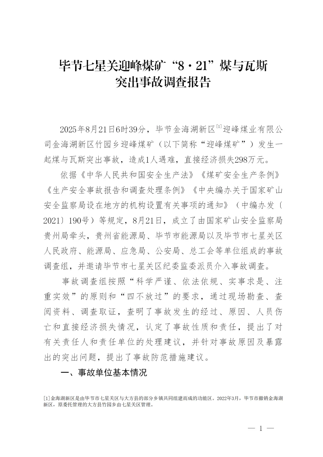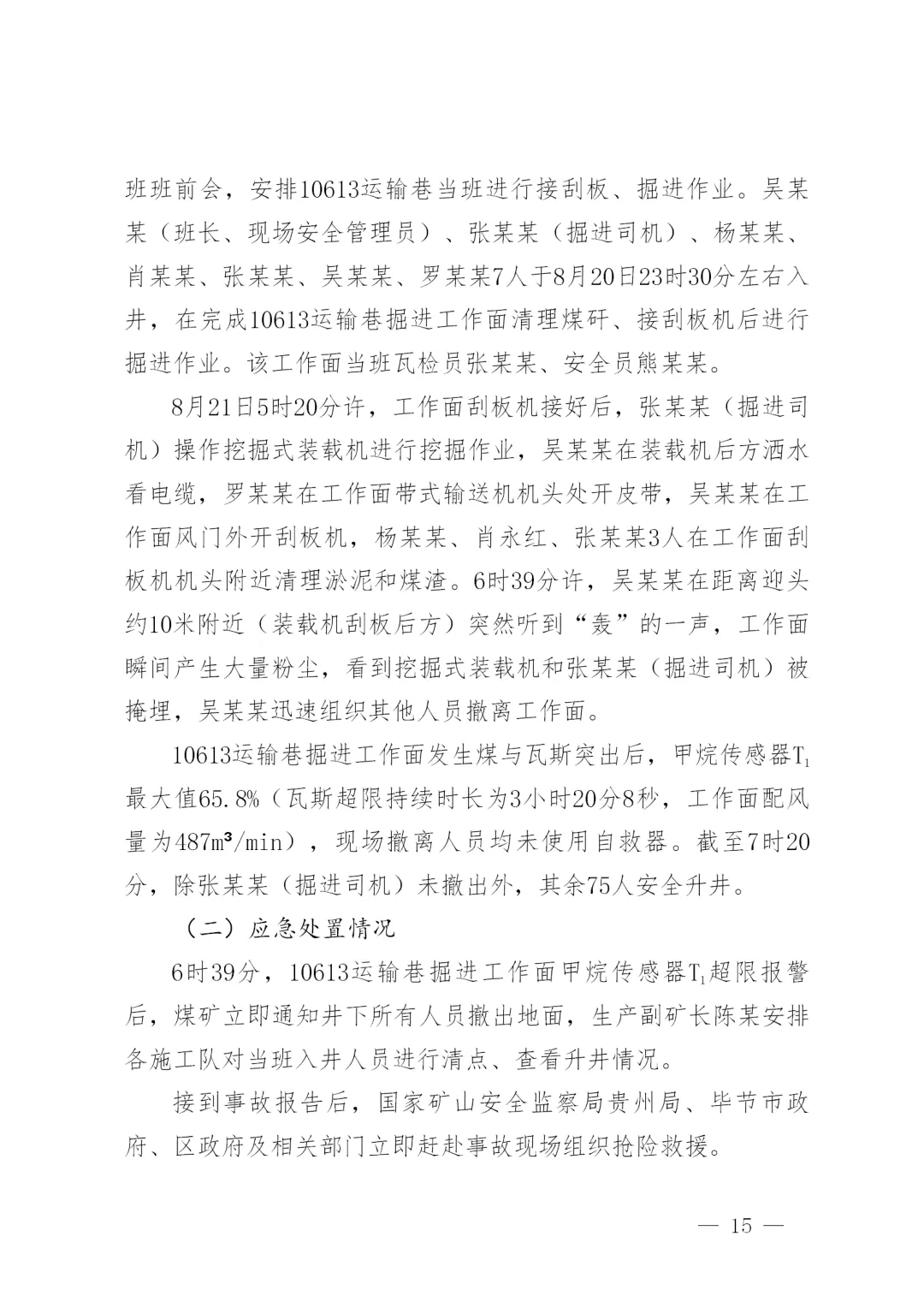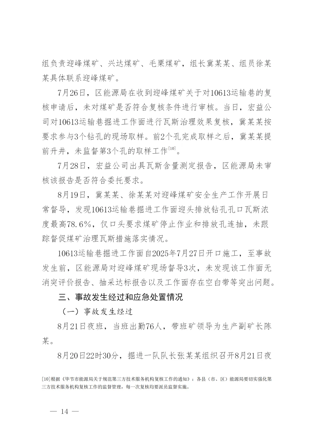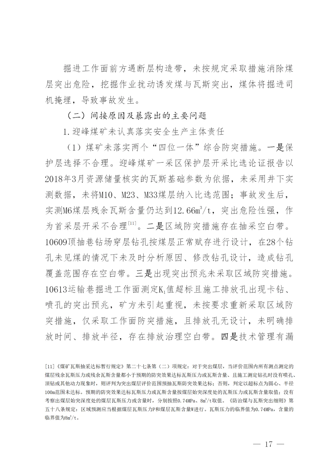 迎峰煤矿“8·21”煤与瓦斯突出事故调查报告