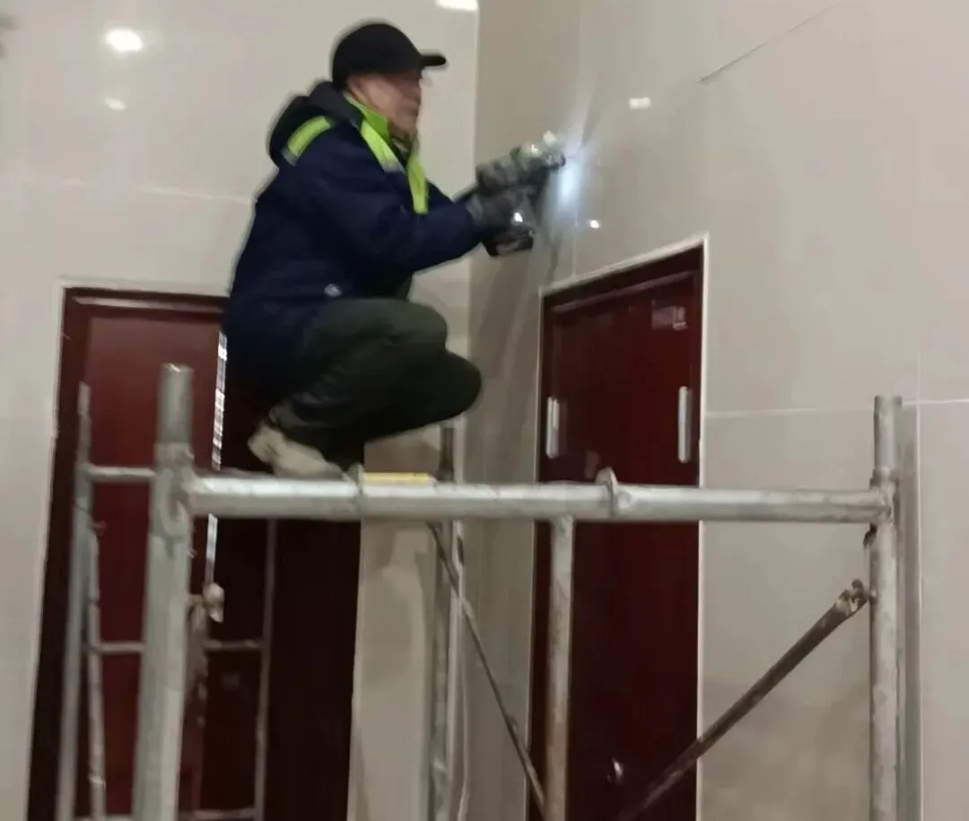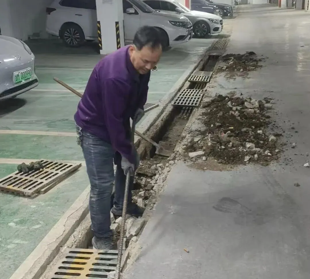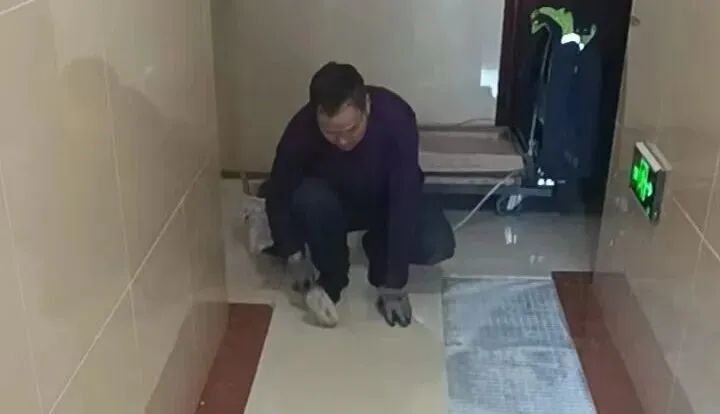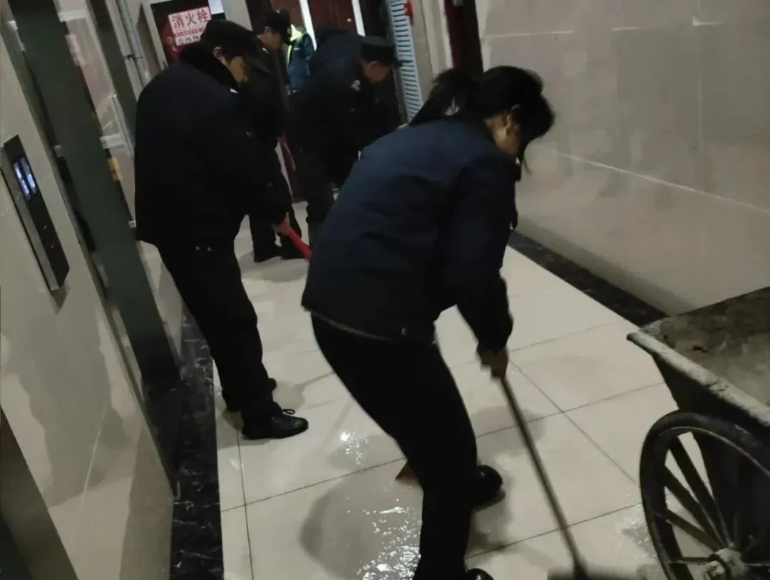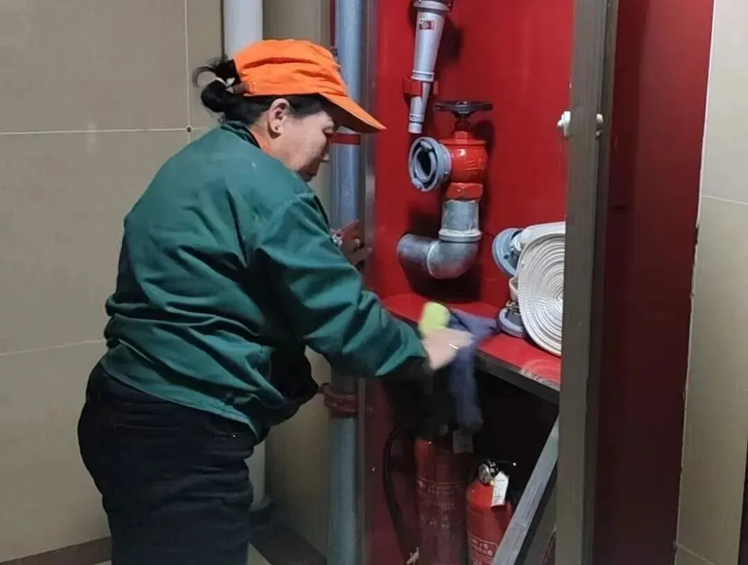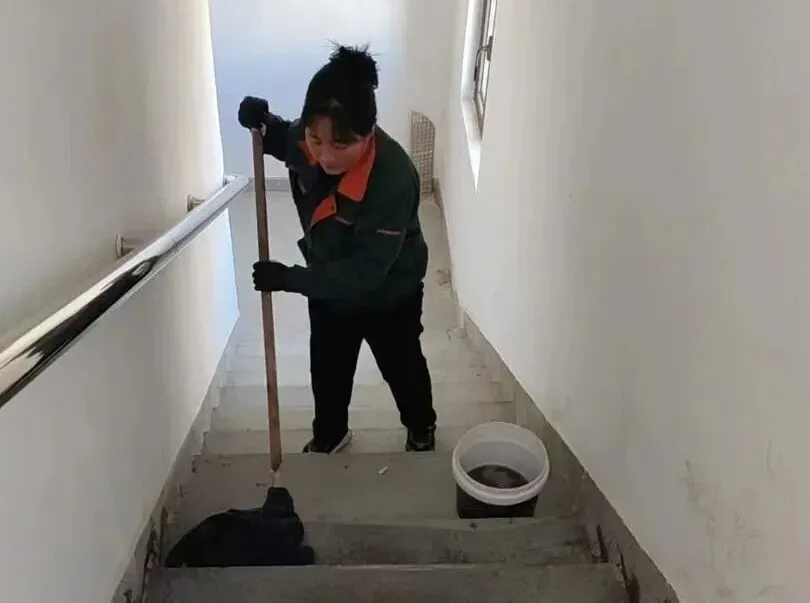 地面的冰雪尚未消融,地下车库的清洁工作也同步开启。面对潮湿的地面和残留的污渍,他们用拖把一遍遍拖洗,用抹布仔细擦拭每一处角落,确保车库整洁干爽,让业主停车时安心又舒心。