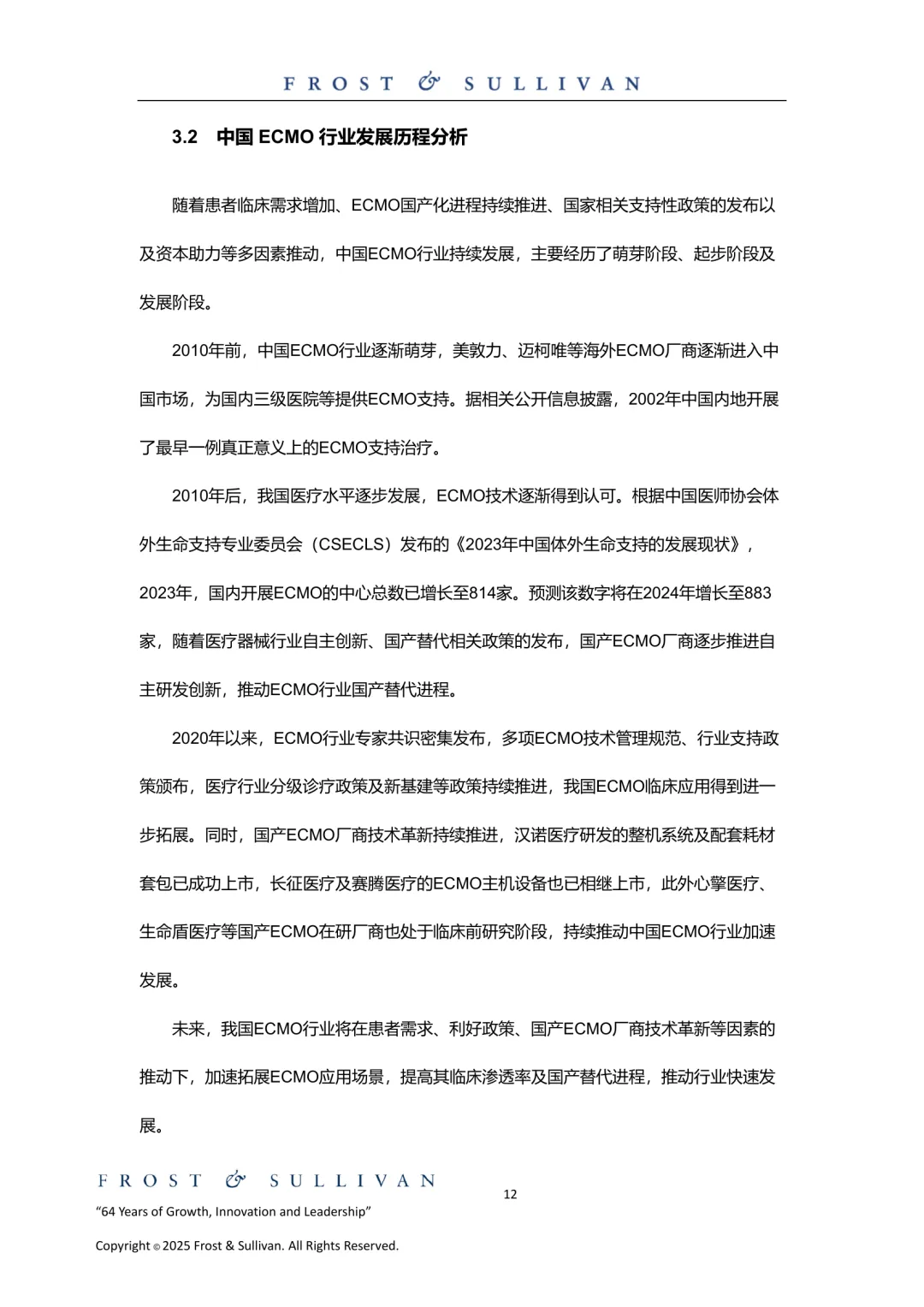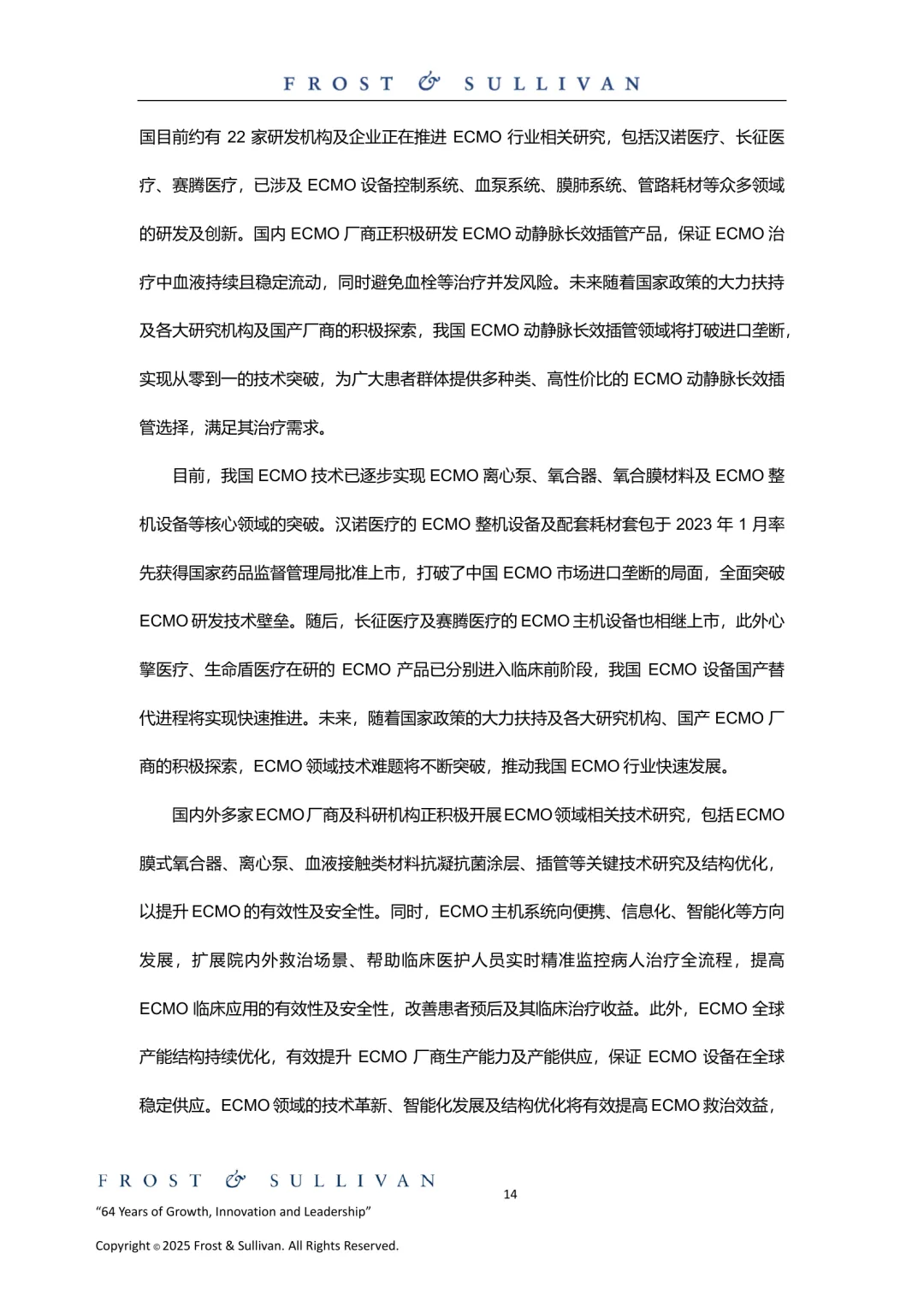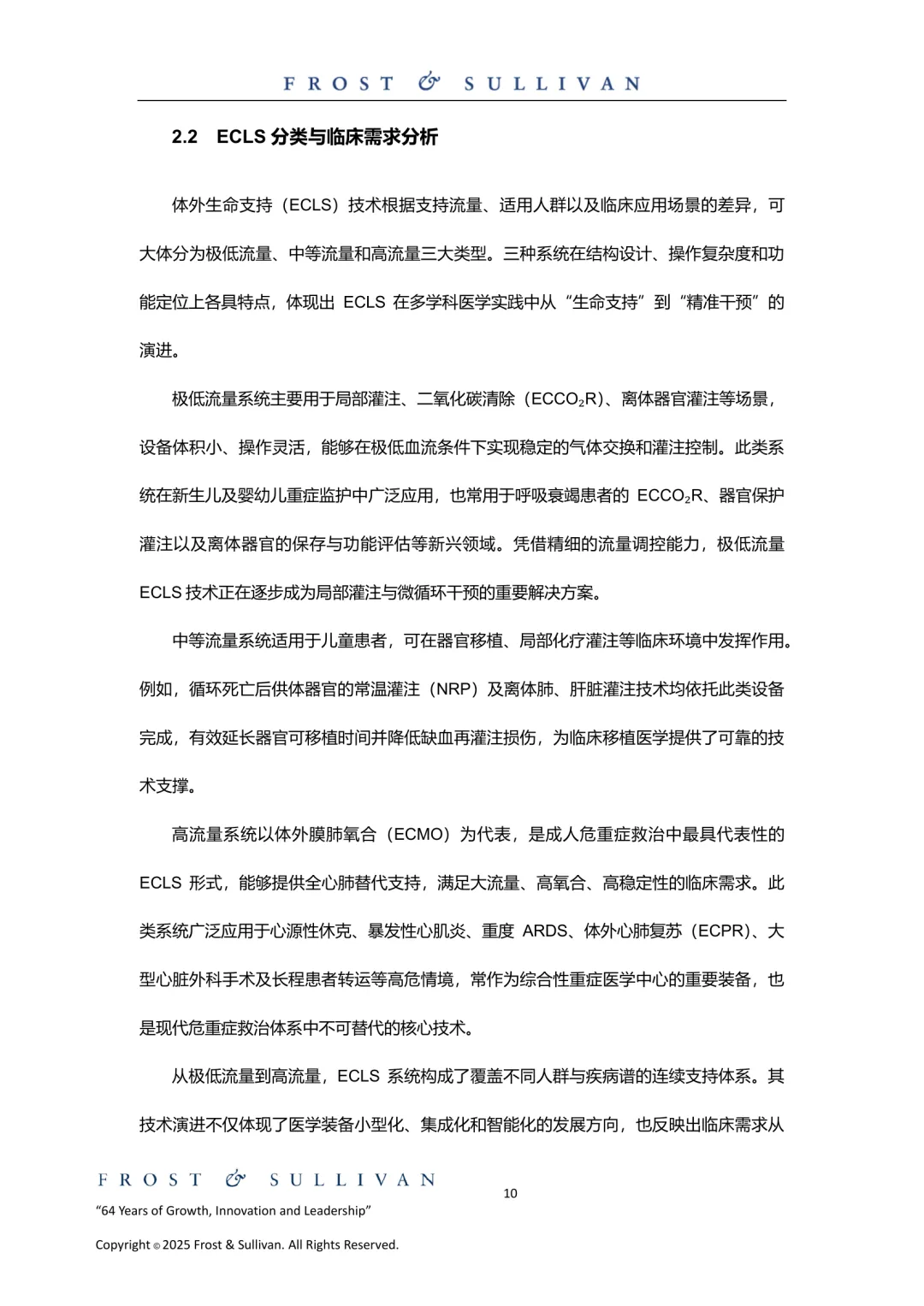 体外生命支持技术是医疗设备领域的重要组成部分,主要应用于重症监护、心肺功能支持及手术辅助等场景。该技术通过体外循环系统维持患者生命体征,确保在复杂或高风险医疗操作中提供稳定支持。体外生命支持设备涵盖多种类型,包括膜肺氧合(ECMO)、体外循环机、血液净化装置等。这些设备在临床中主要用于急性呼吸衰竭、心脏手术、严重感染及多器官功能障碍等疾病的救治。随着医疗技术的进步,体外生命支持系统的安全性、可靠性和智能化水平持续提升,逐步向便携化、精准化方向发展。行业内的技术创新集中在提高设备的稳定性、降低并发症发生率以及优化患者适应性。设备与人工智能、大数据分析等技术的融合,推动了个性化治疗方案的实现。体外生命支持的应用范围正从传统重症监护拓展至更多专科领域,如儿科、急诊和远程医疗等。市场增长动力主要来自人口老龄化、慢性病发病率上升及医疗需求多样化。与此政策支持和技术突破为行业发展提供了良好环境。体外生命支持技术将更加注重临床应用的便捷性、经济性和可及性,以满足日益增长的医疗需求。