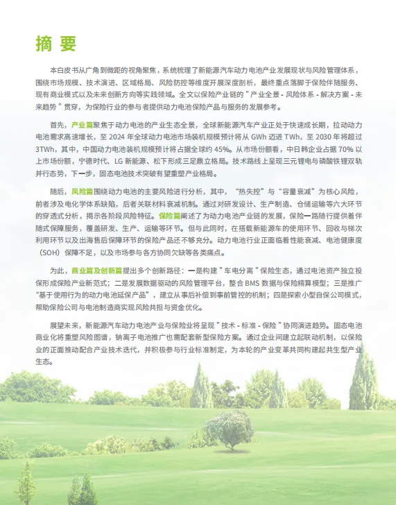 点击《新能源汽车动力电池保险创新白皮书》可获取完整版,解锁产业风险保障与保险创新路径~
