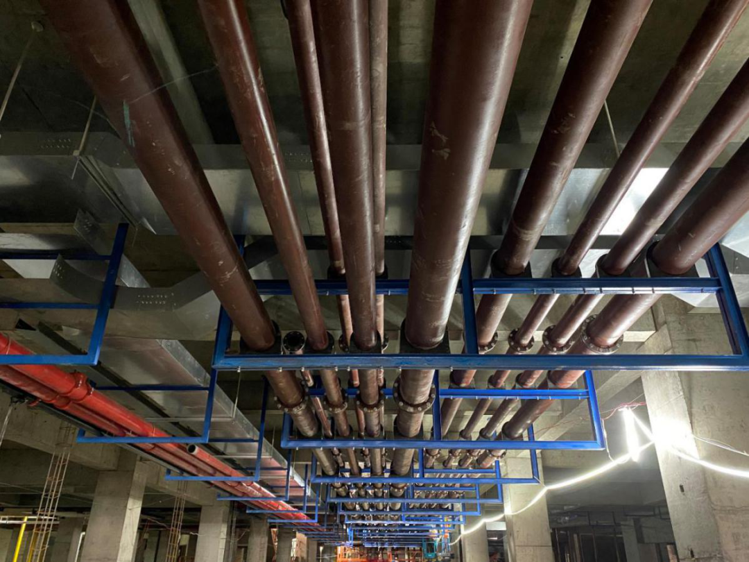 机电管线整体抬升技术,不仅避免了高处交叉施工作业,保证了施工的质量与进度,同时极大地减少了高处作业,避免了安全隐患。整体抬升技术为机电专业提前插入提供了可能,延长了施工工期,避免了抢工风险。对于管线需要二次镀锌的项目来说则更加便利。