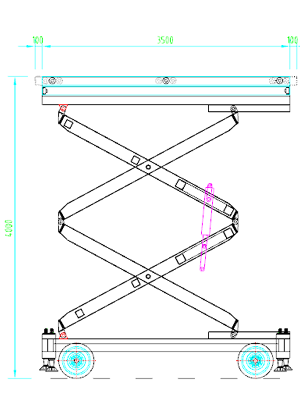 为了更好地实现整体抬升功能,量身设计了一种新型机电管线整体抬升装置。包括底座、液压顶升装置、三层四向微调平台、微调液压系统及电控系统五个部分组成,额定荷载2.5T。本发明运用可移动式底座将装置移动至管线整体抬升位置并用支腿固定;待综合管线模块放置在装置上并固定后,通过装置的液压顶升装置部分使模块进行升降,升降至制定高度后停止升降,运用三层四向微调平台来对模块的前后左右四向进行10cm内的微调,确保前后模块对位准确后进行拼装。整个装置采用电动液压控制,使用三套单独的液压系统分别控制平台的六向移动,采用随车和遥控两套电控按钮,确保使用安全的同时提高使用的便利。